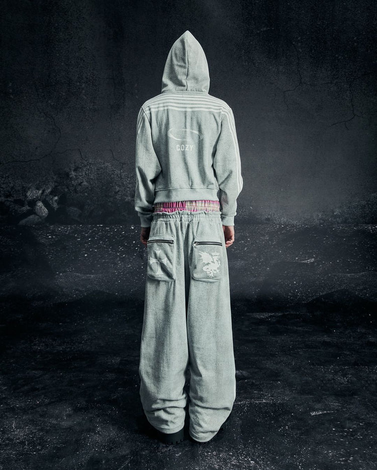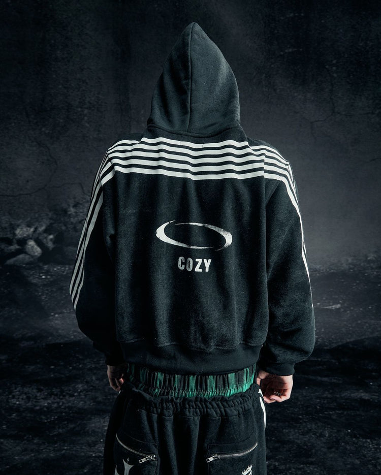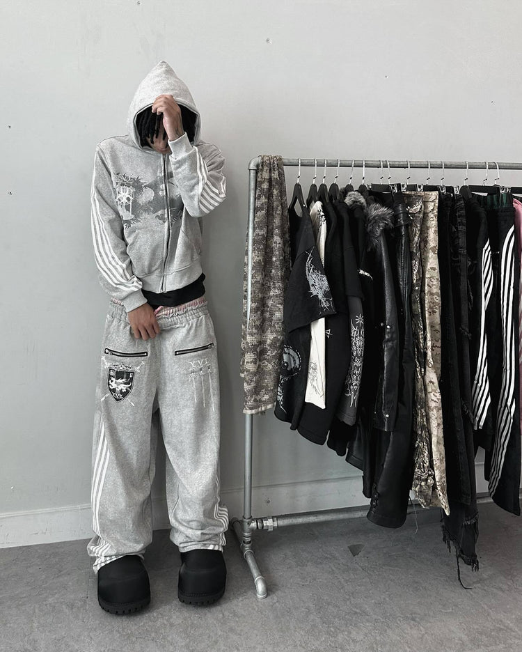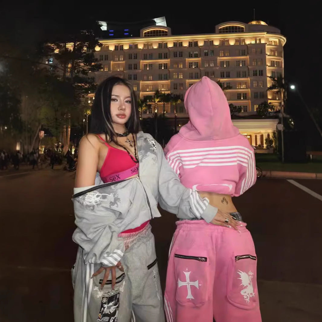 Five-stripe dragon and cross print hoodie.