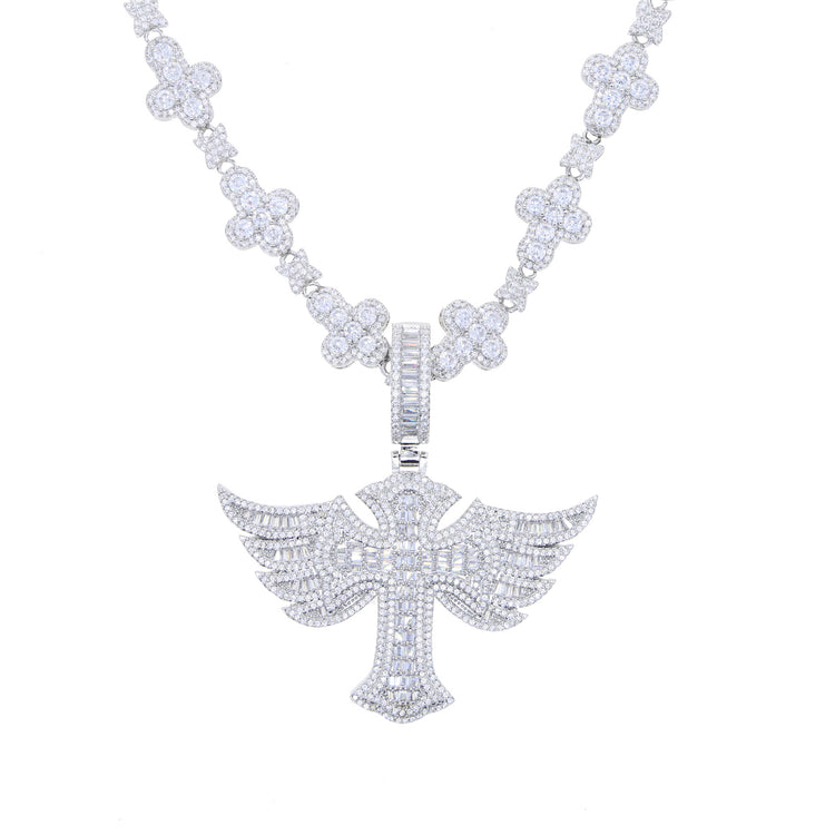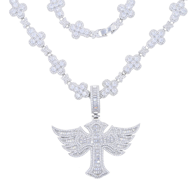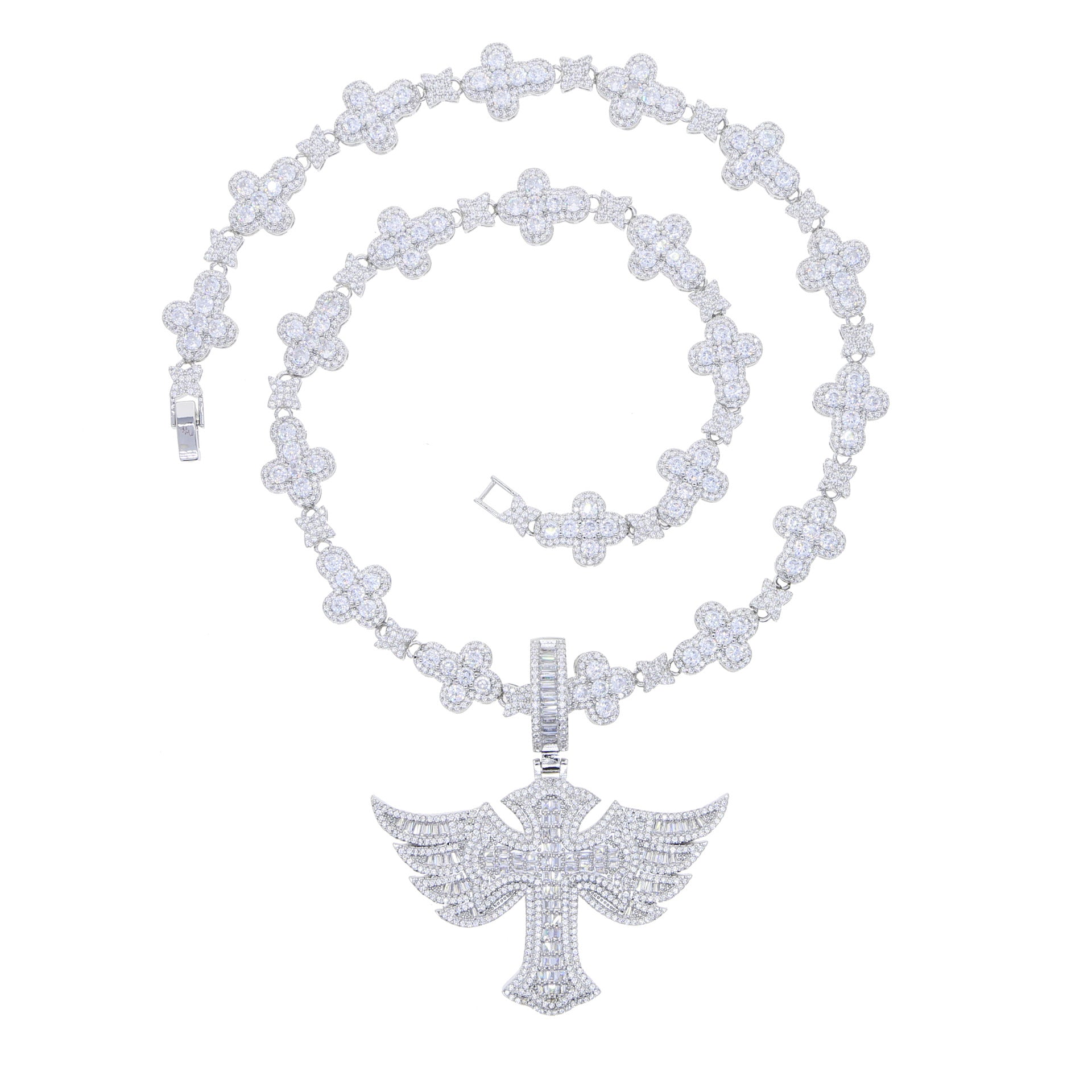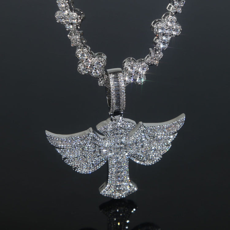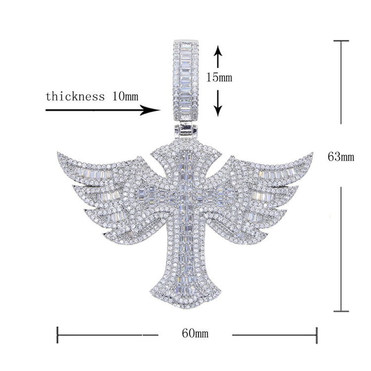 Hip Hop Winged Cross Zirconia Pendant Necklace