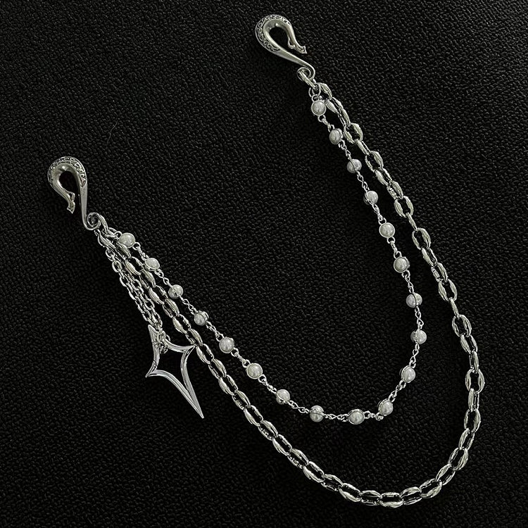 Hip Hop Double-Layer Pearl Shell Jeans Chain Waist Chain