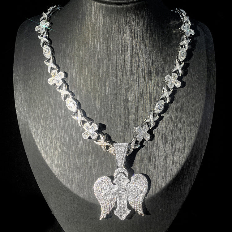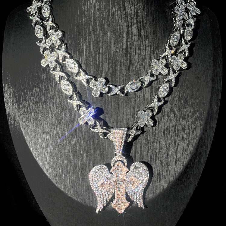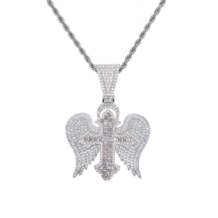 Hip-hop cross-shaped diamond Cubic Zirconia necklace