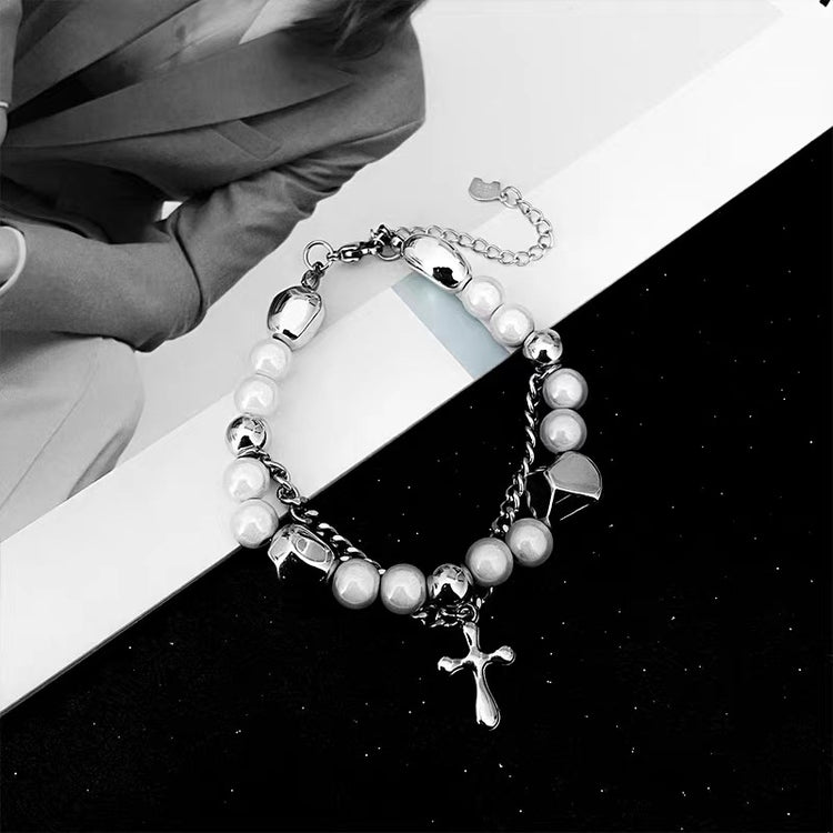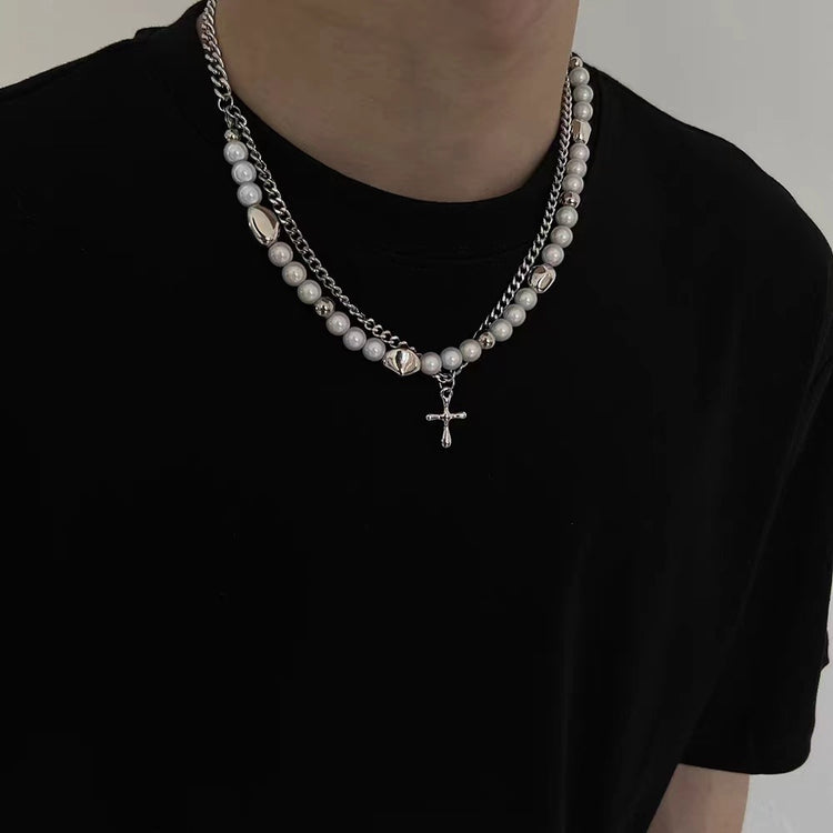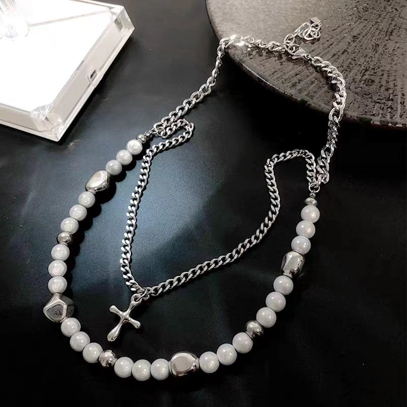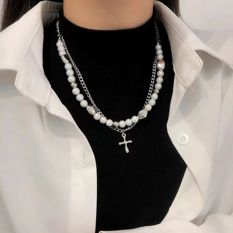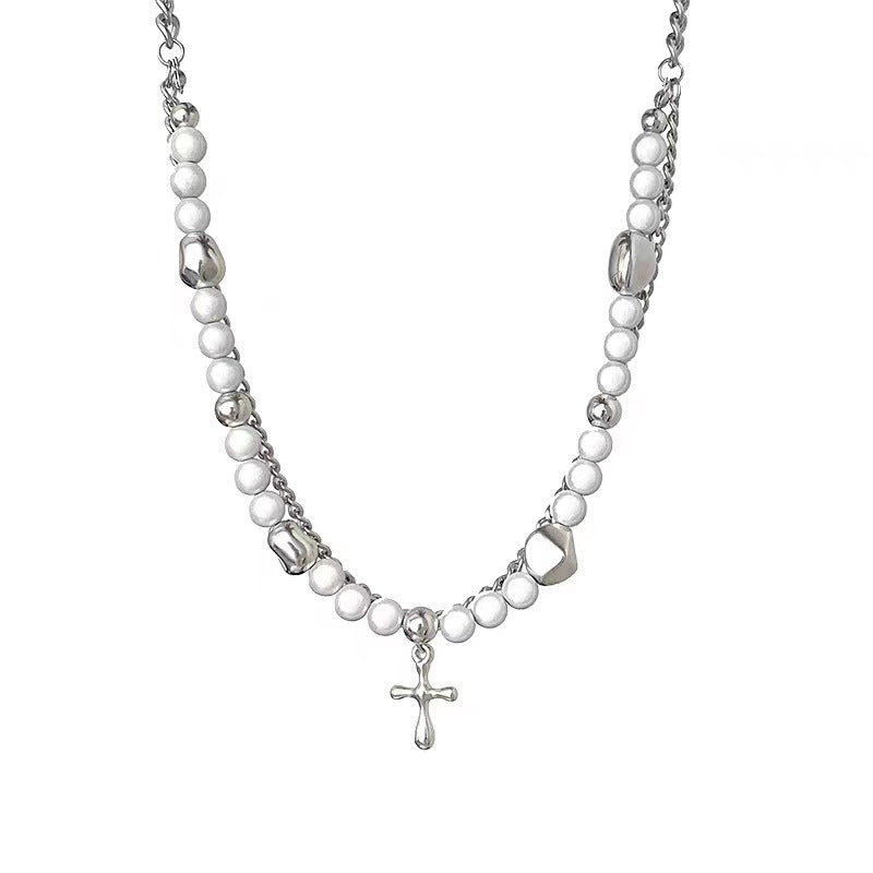 dxm-2024103107-Reflective Pearl Cross Necklace