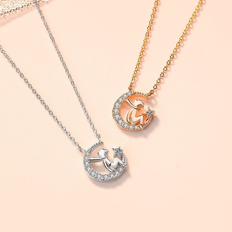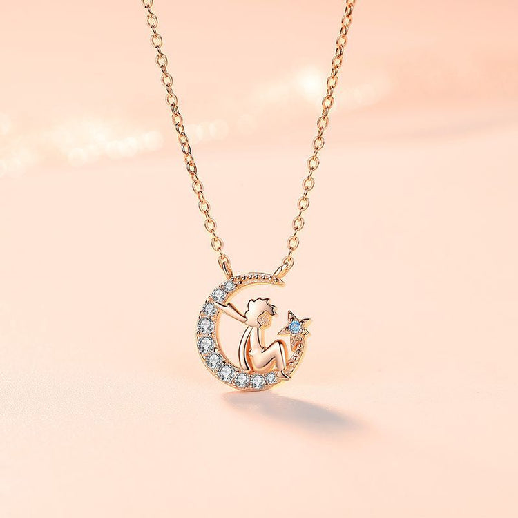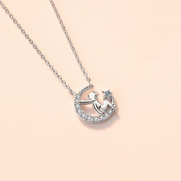 De kleine prins ketting s925 sterling zilveren ster en maan hanger sleutelbeenketting