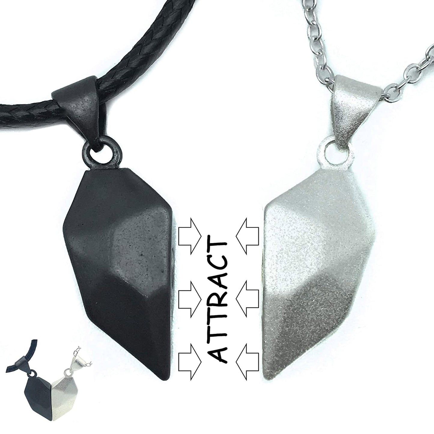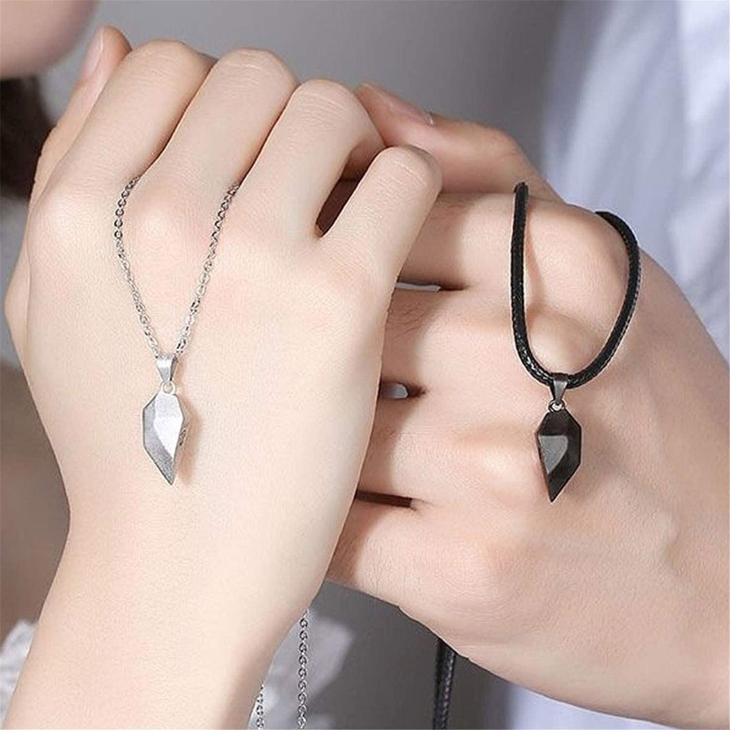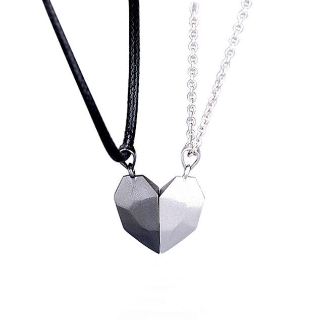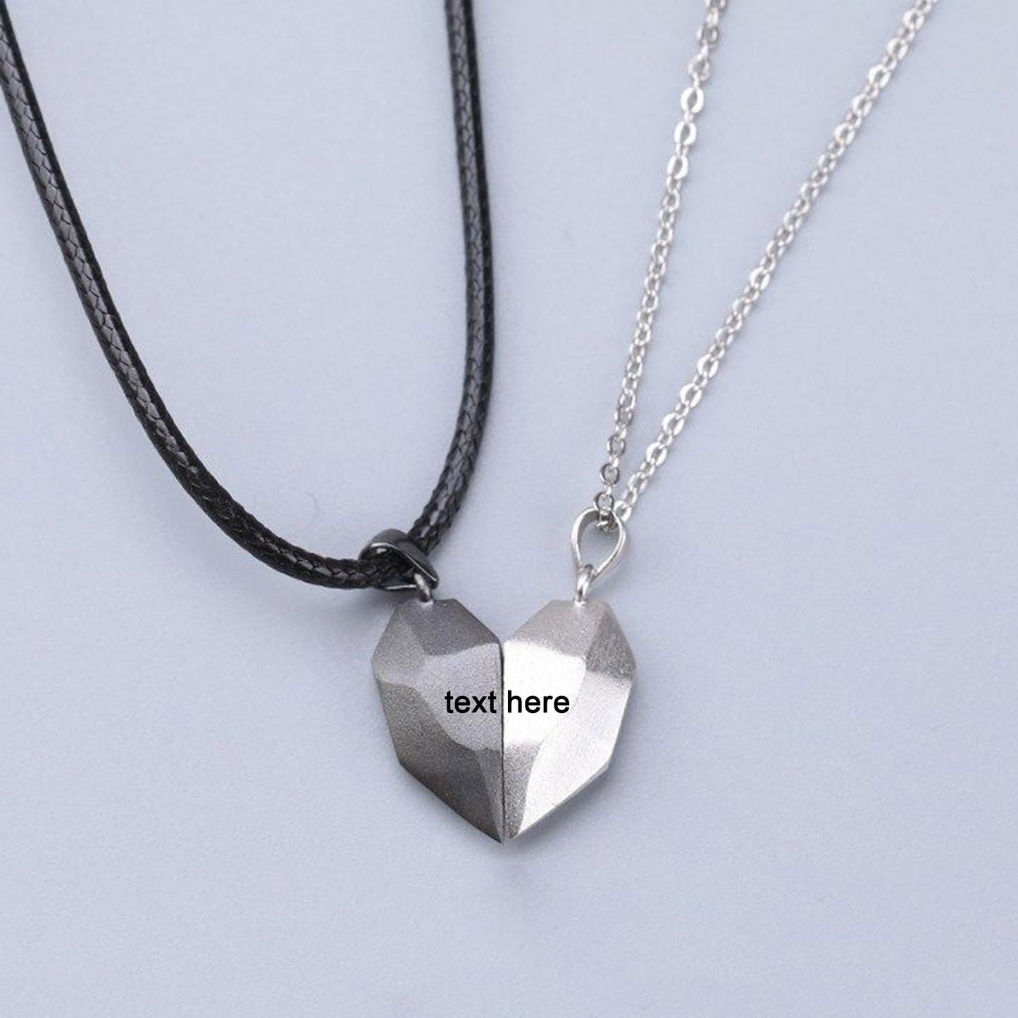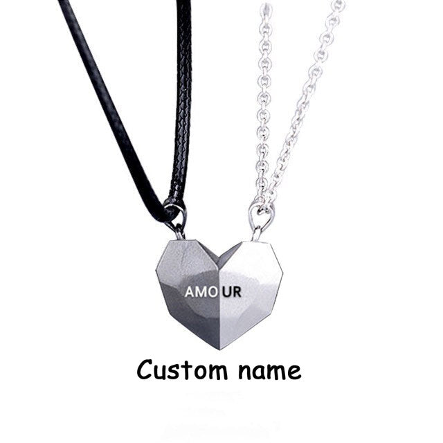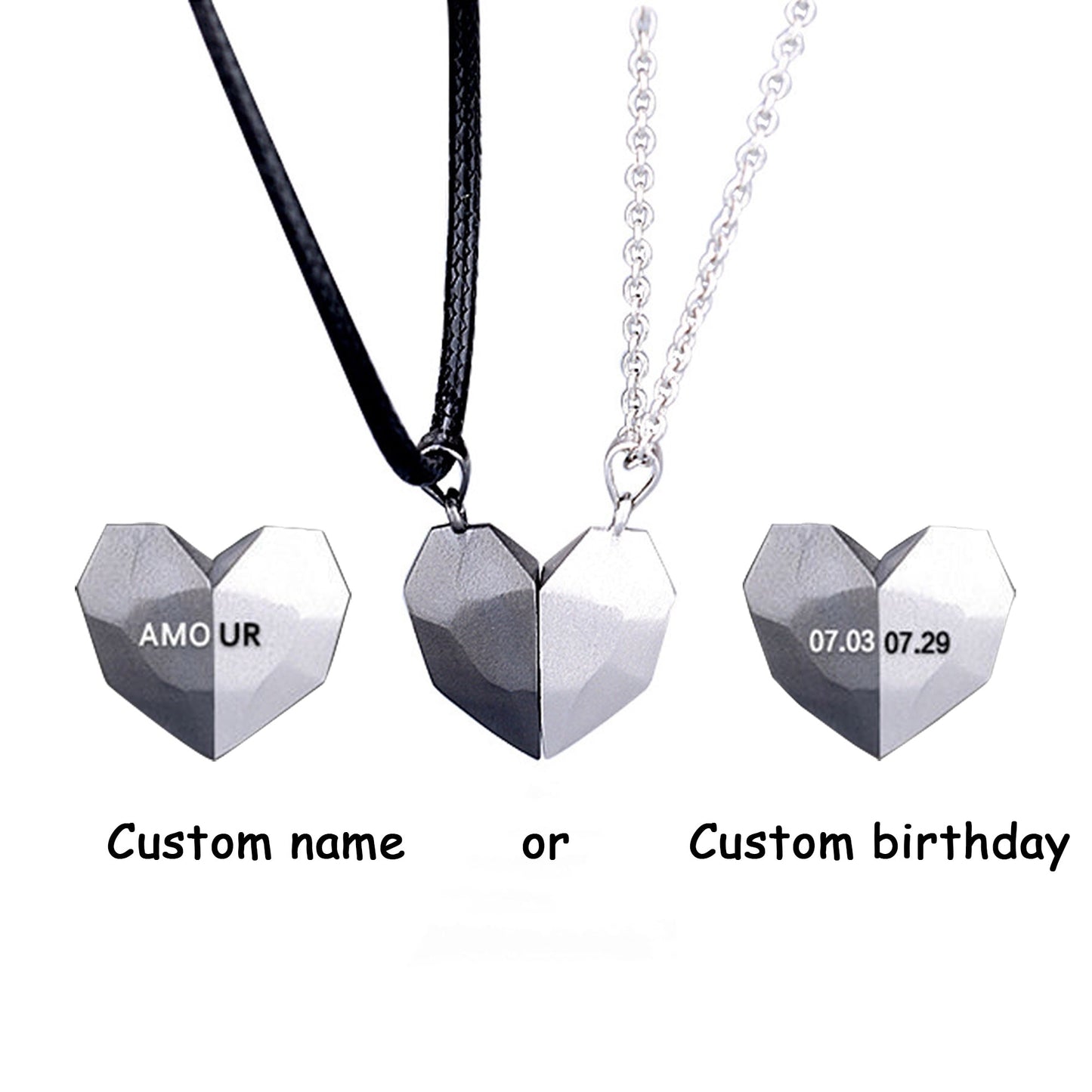 2PCS/set Personalized Custom Name Date Wishing Stone Heart Magnetic Couple Necklace Birthday Gift