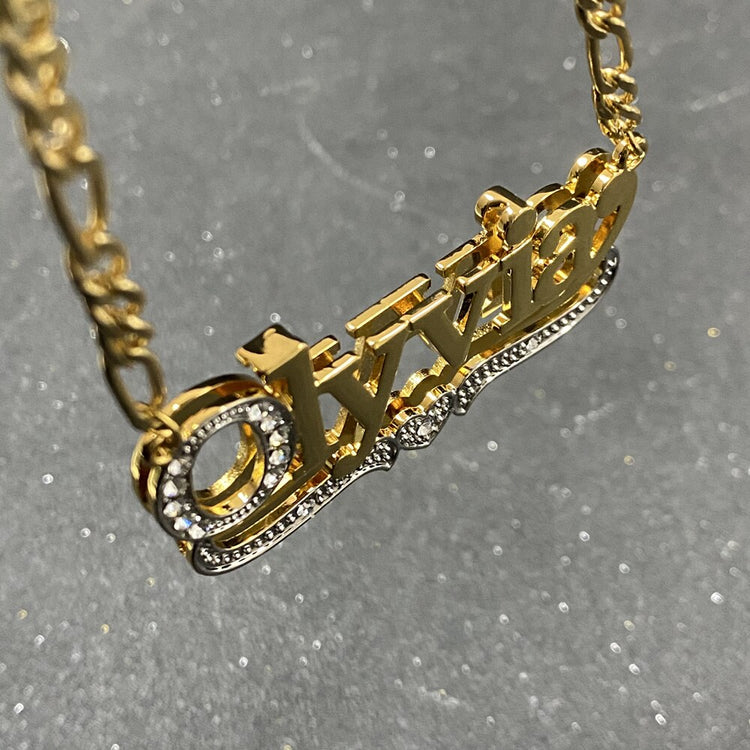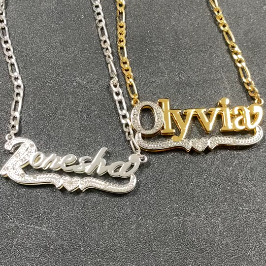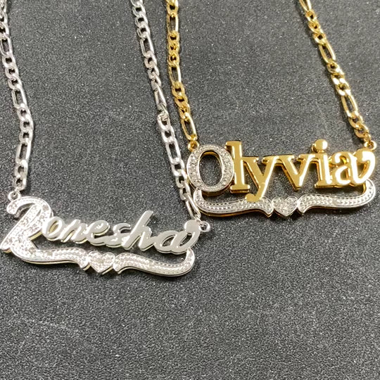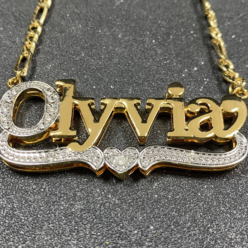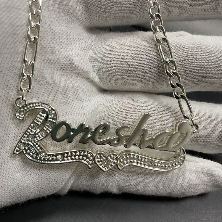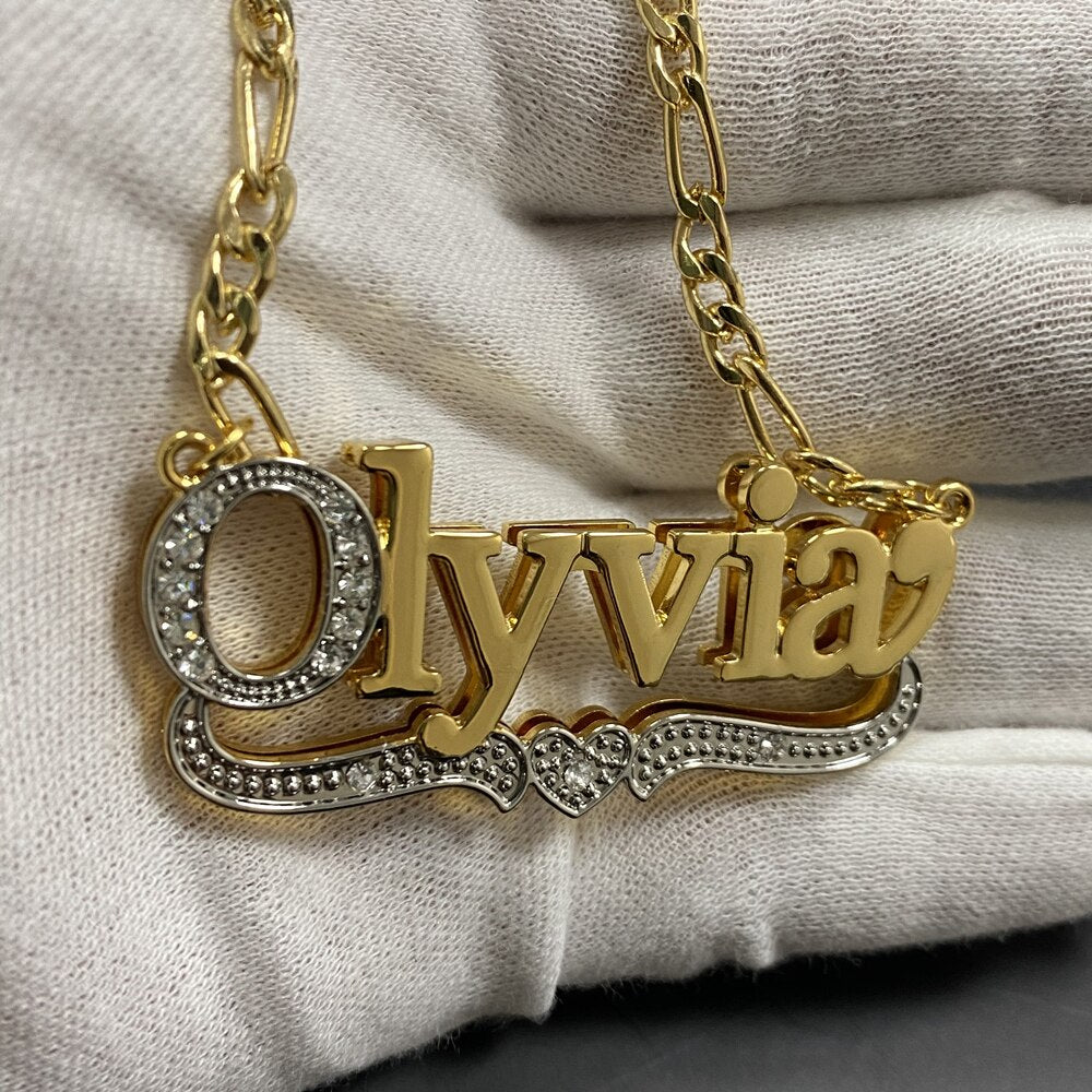 3D Name Necklace Custom Two Color Stainless Steel Double Layer Under Heart Necklace