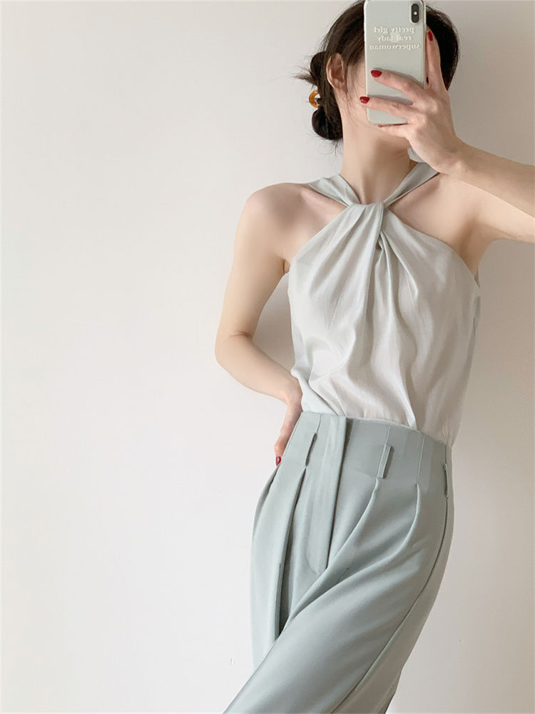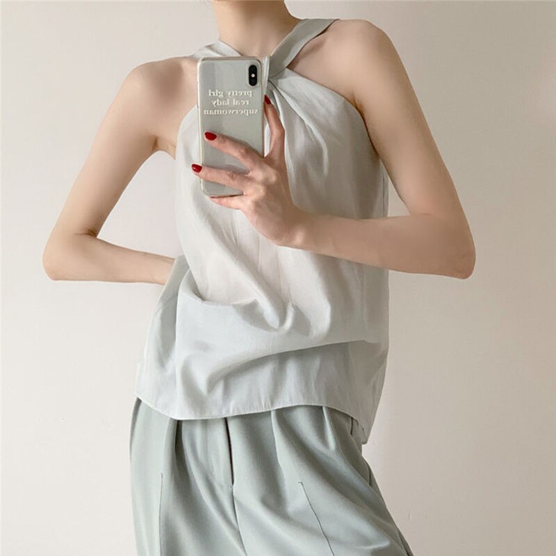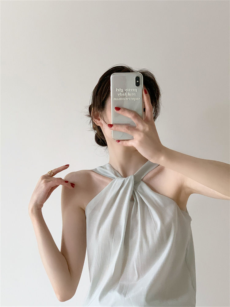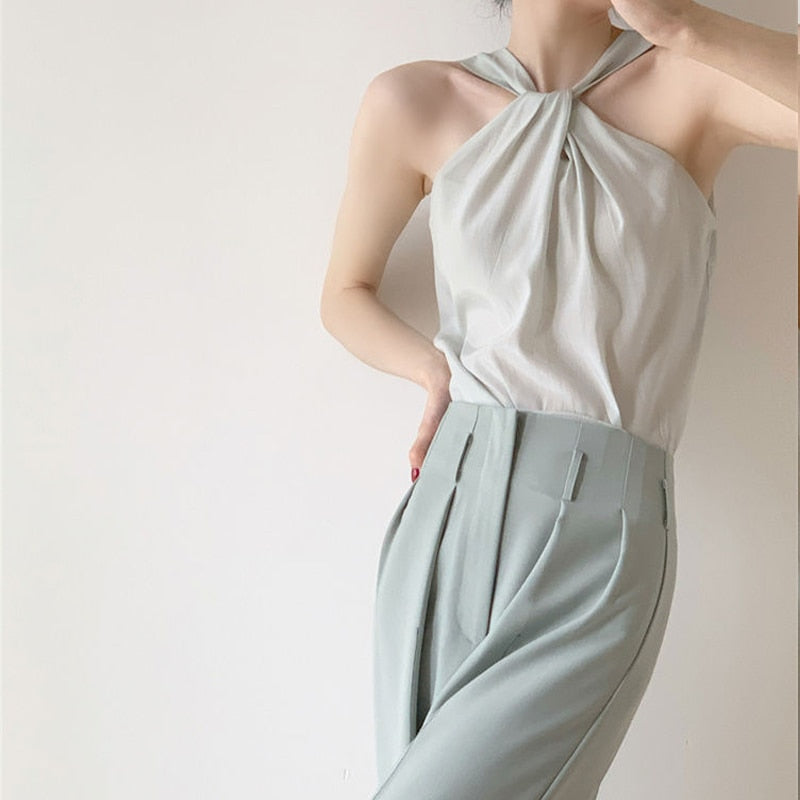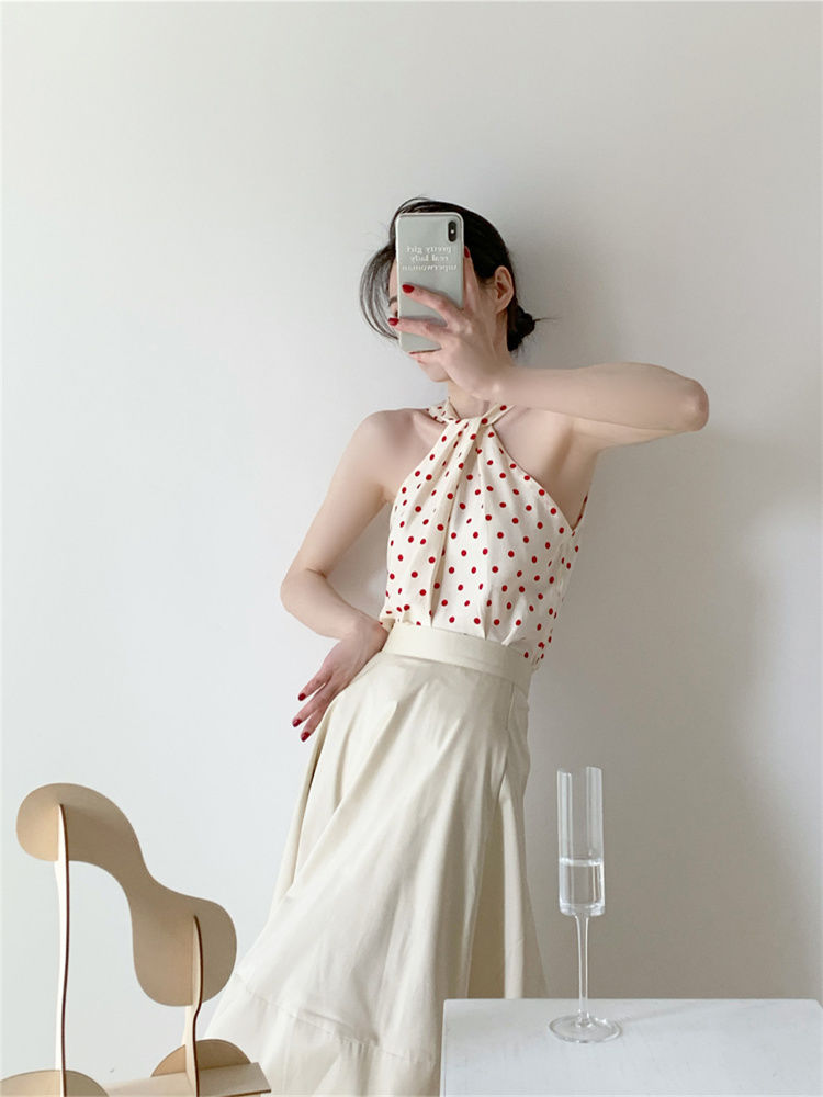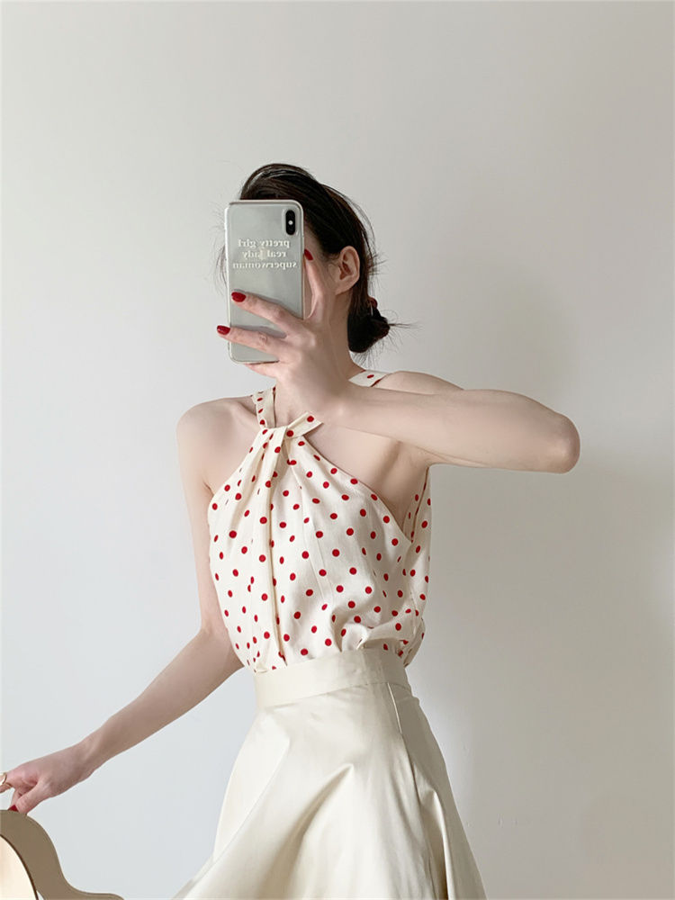 Backless Camis Women Summer Polka Dot Twist Halterneck Vest Female Casual Chiffon Tops