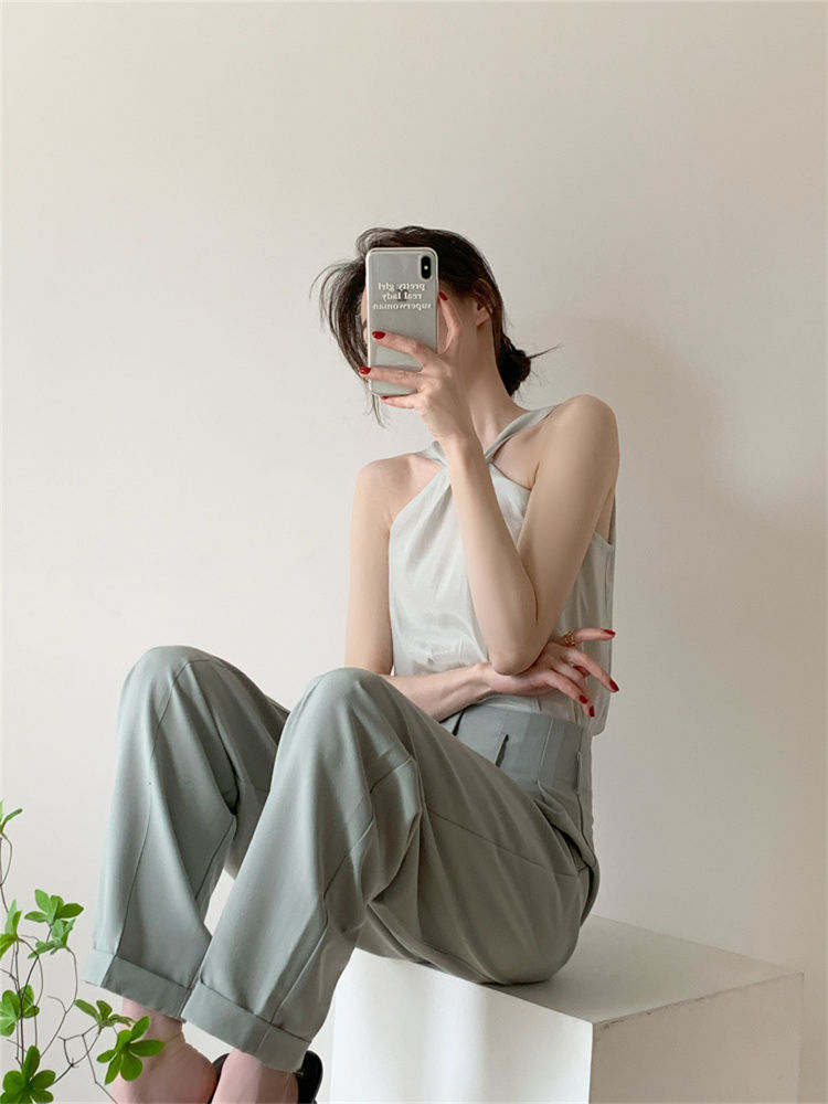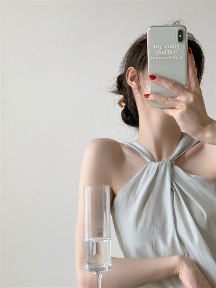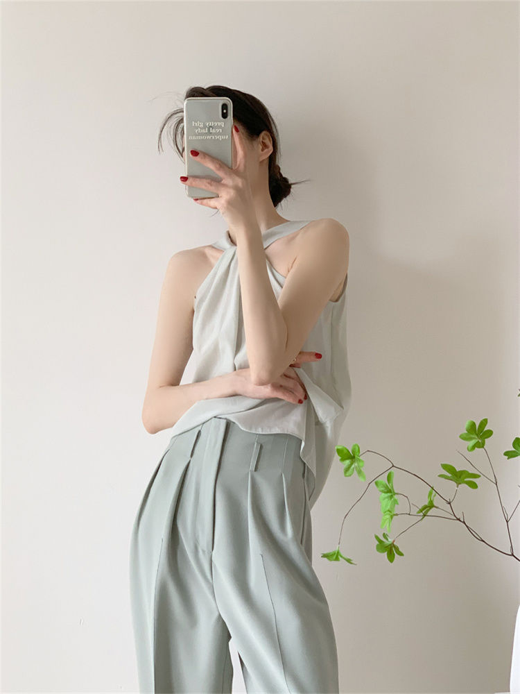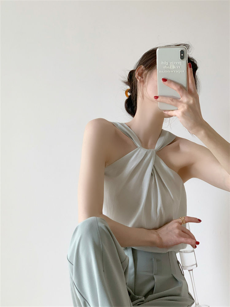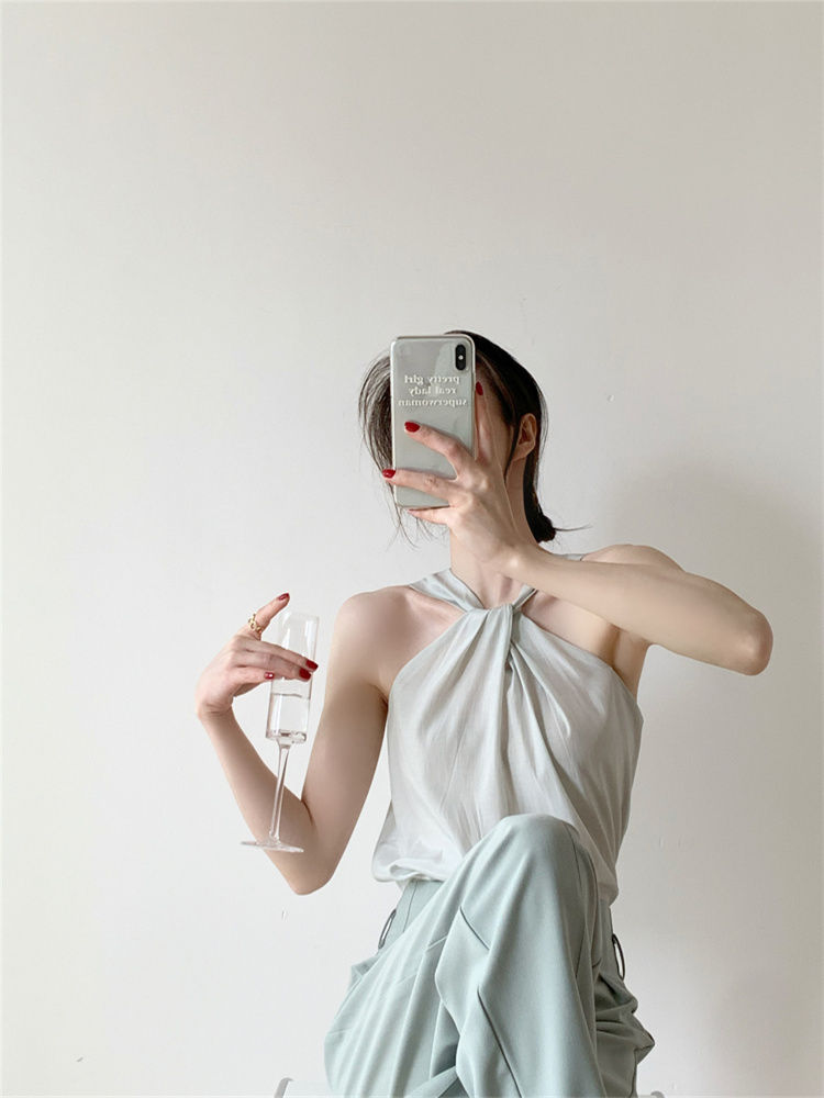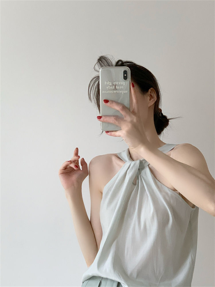 Backless Camis Women Summer Polka Dot Twist Halterneck Vest Female Casual Chiffon Tops