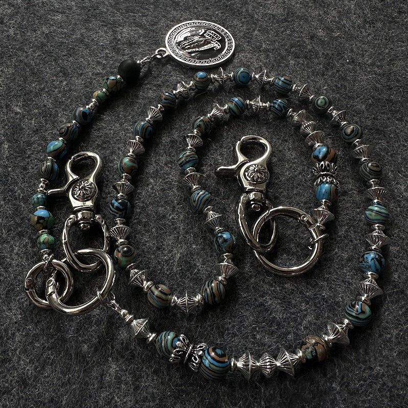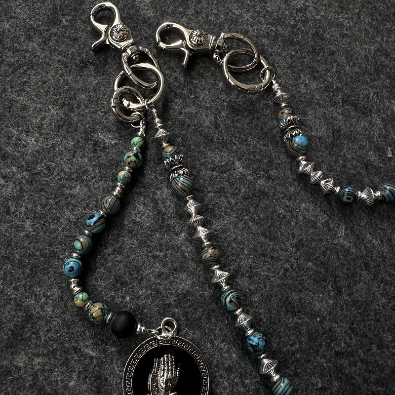 Expertly crafted waist chain from chrome hearts, featuring a sleek black and silver stamp design. Enhance your style and add a touch of edge with this unique accessory. Made with exceptional quality, this waist chain is sure to make a statement.