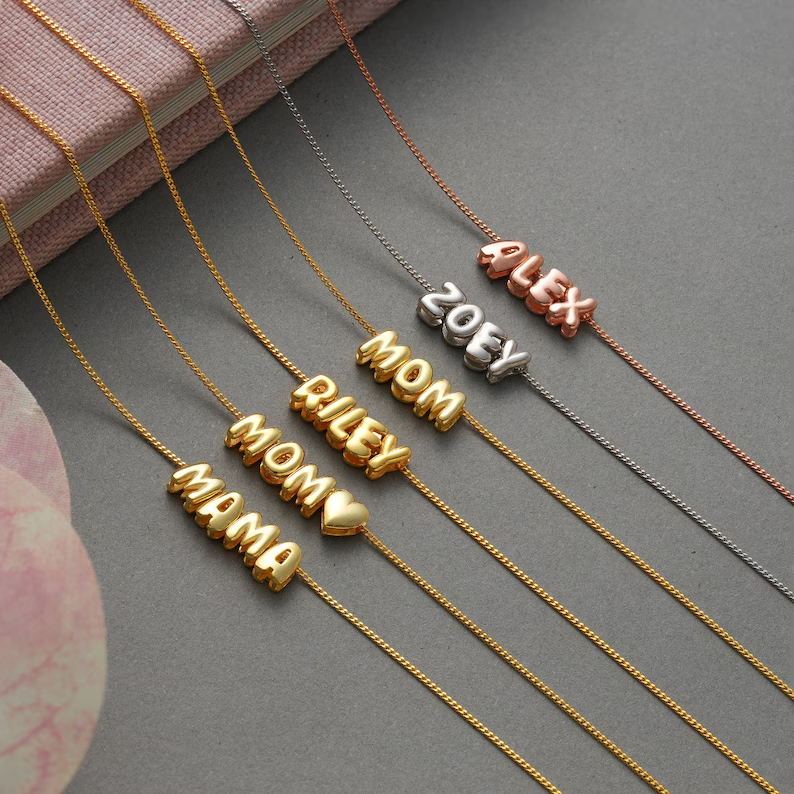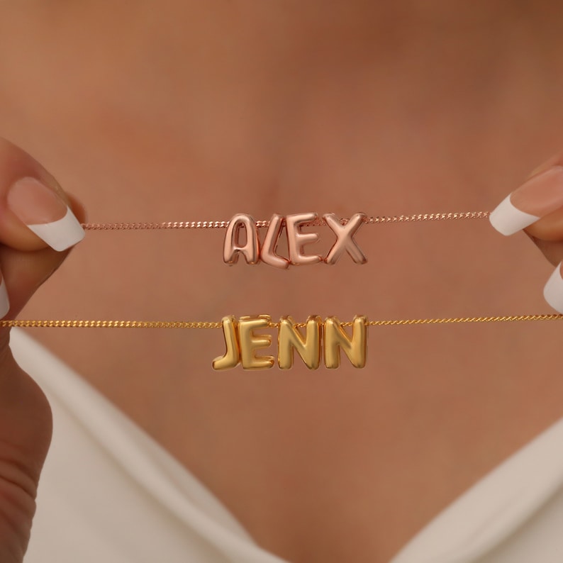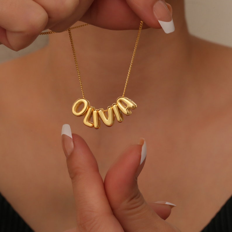 This bubble letter name necklace is a beautiful way to show off your name with style. Crafted from durable metal, it features a bubble lettering design that's trendy and chic. Whether you're gifting yourself or someone special, this stylish accessory is sure to impress.