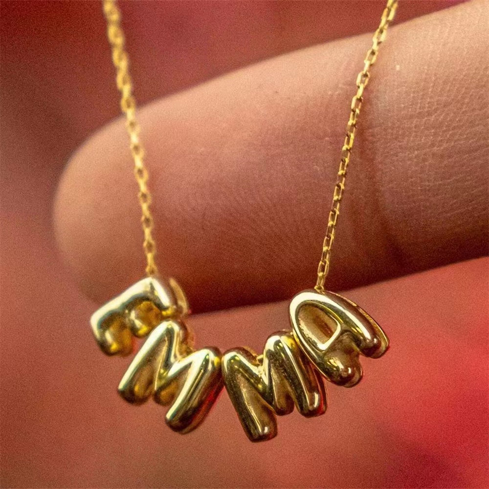 3D Letter Necklace . Bubble Name Necklace . Personalized Jewelry . Sterling silver necklace . gift for Christmas .18K gold letter necklace