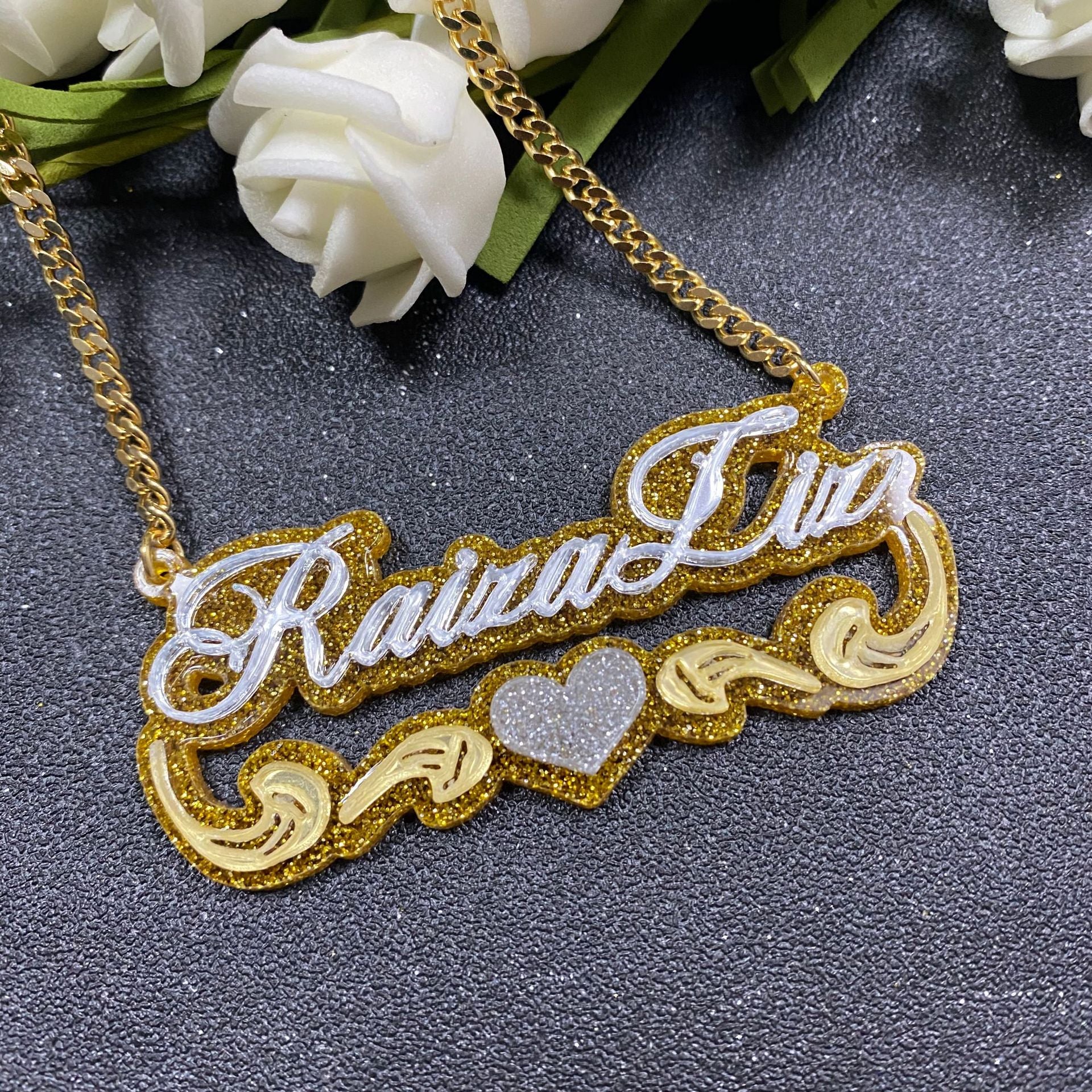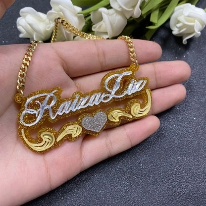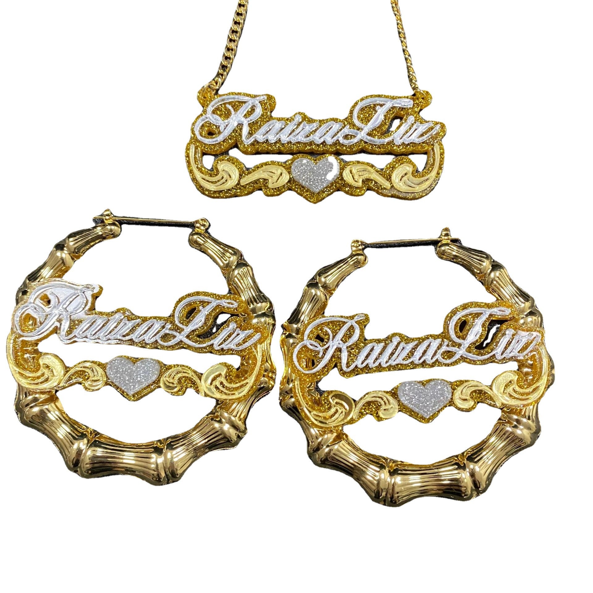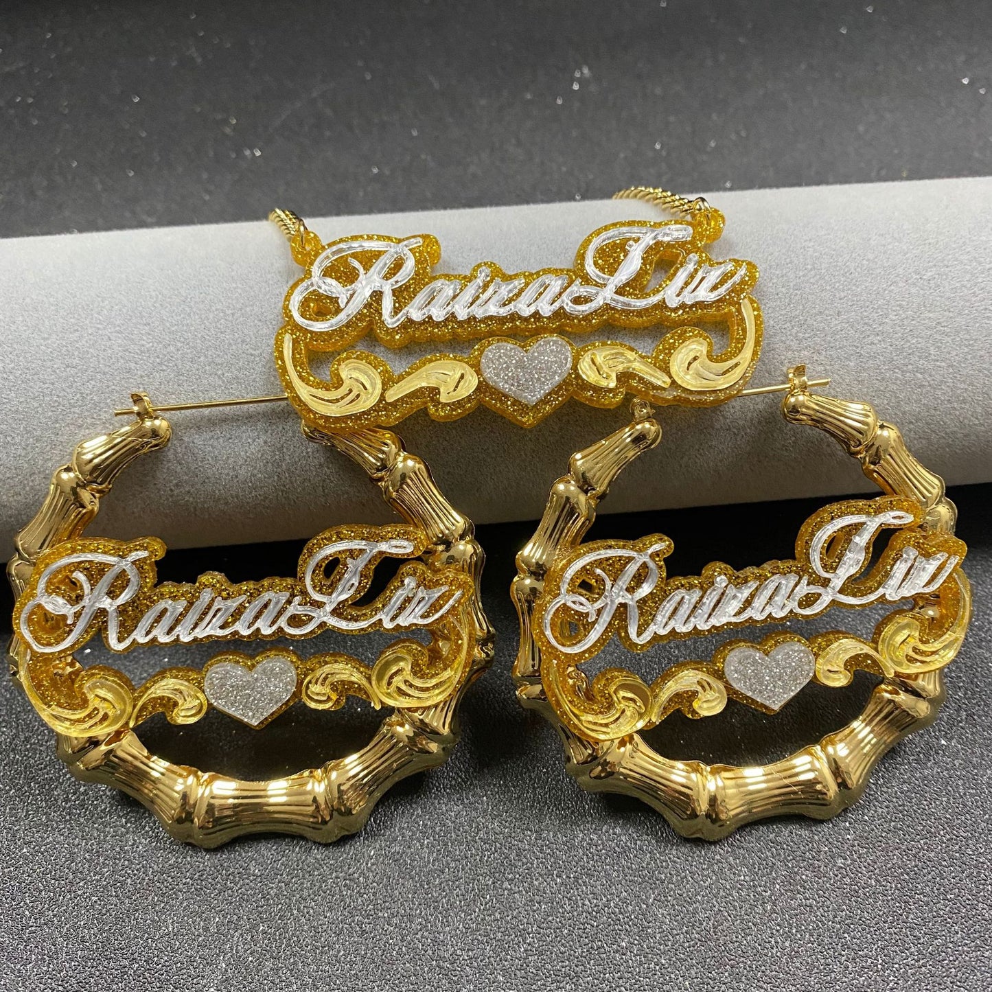 Custom creative name acrylic bamboo earrings necklace glitter set