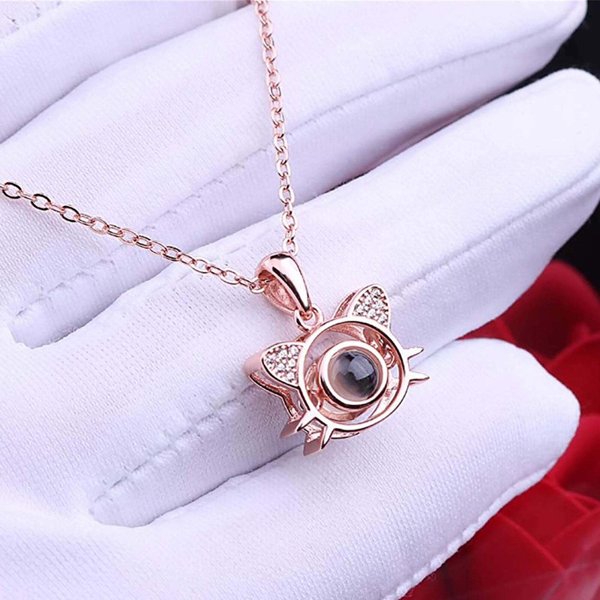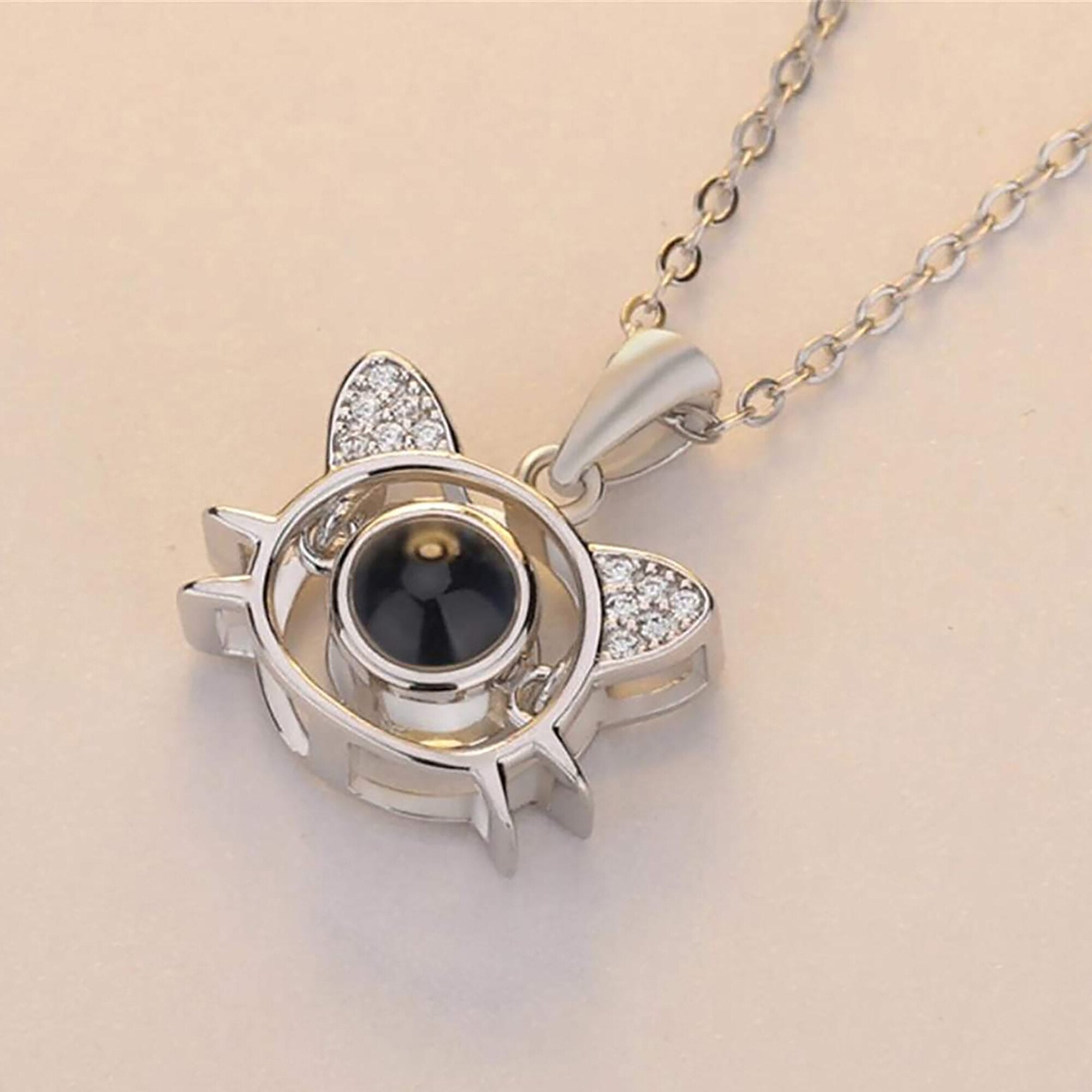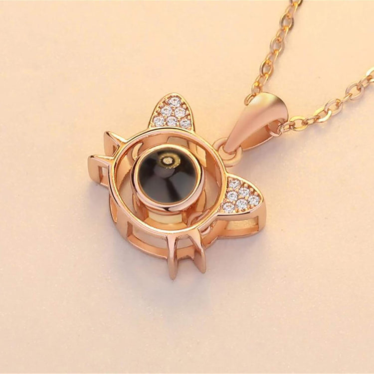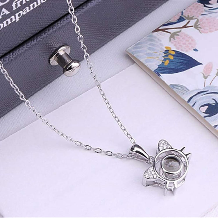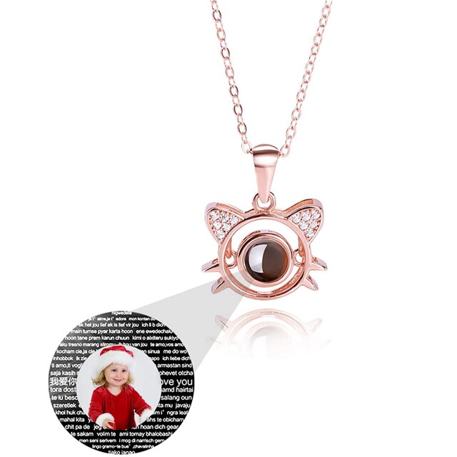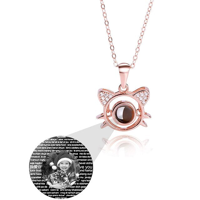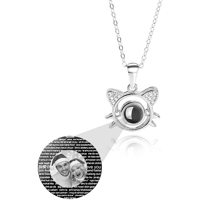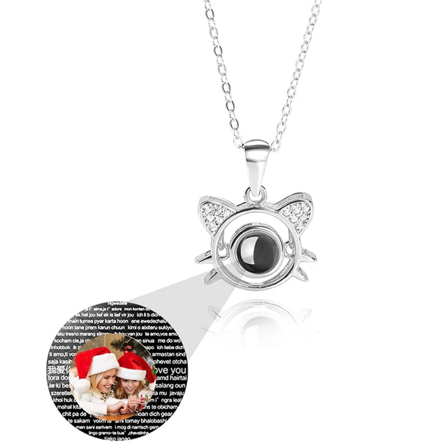 Cute Cat Shaped Projection Pendant Personalized Custom Photo Name Necklace
