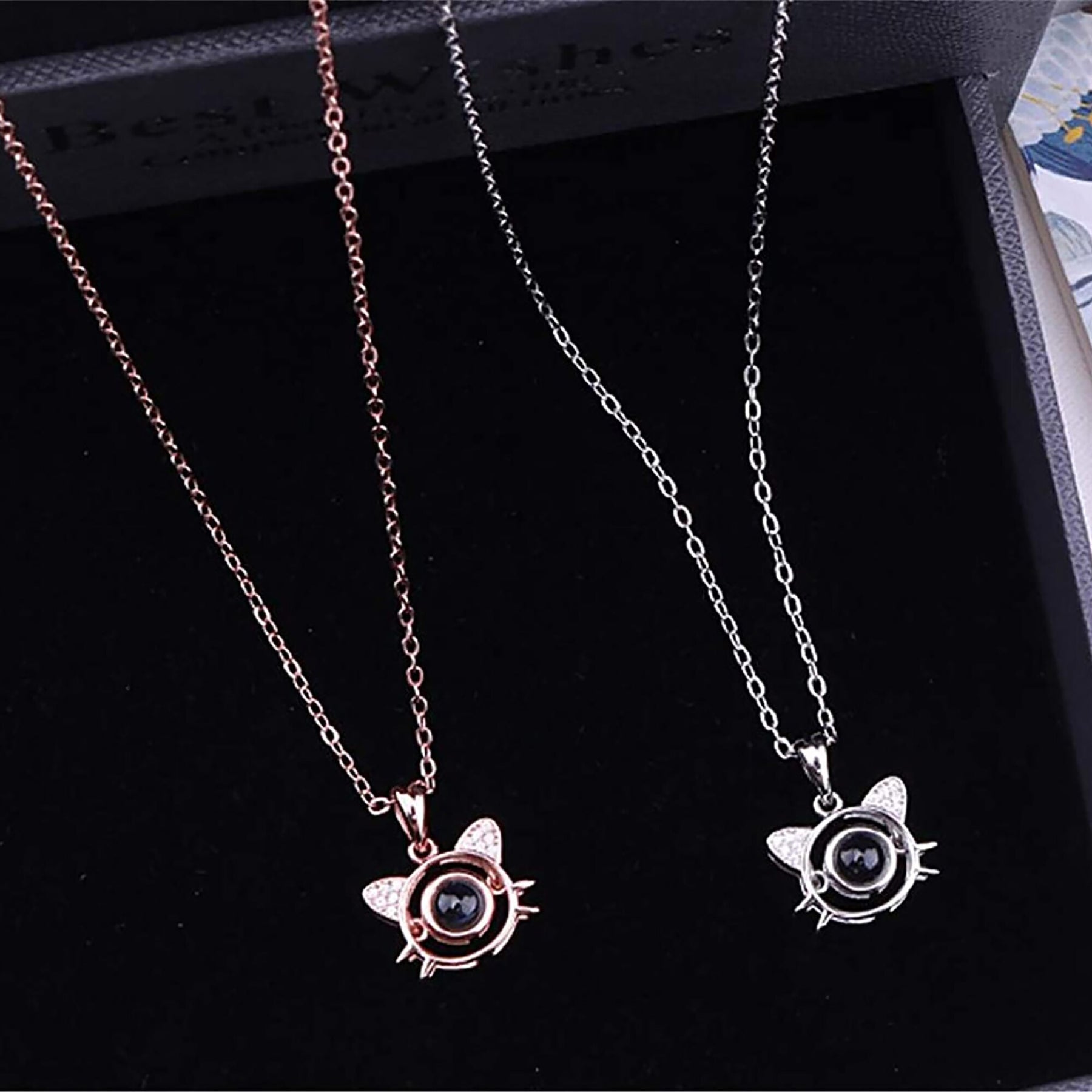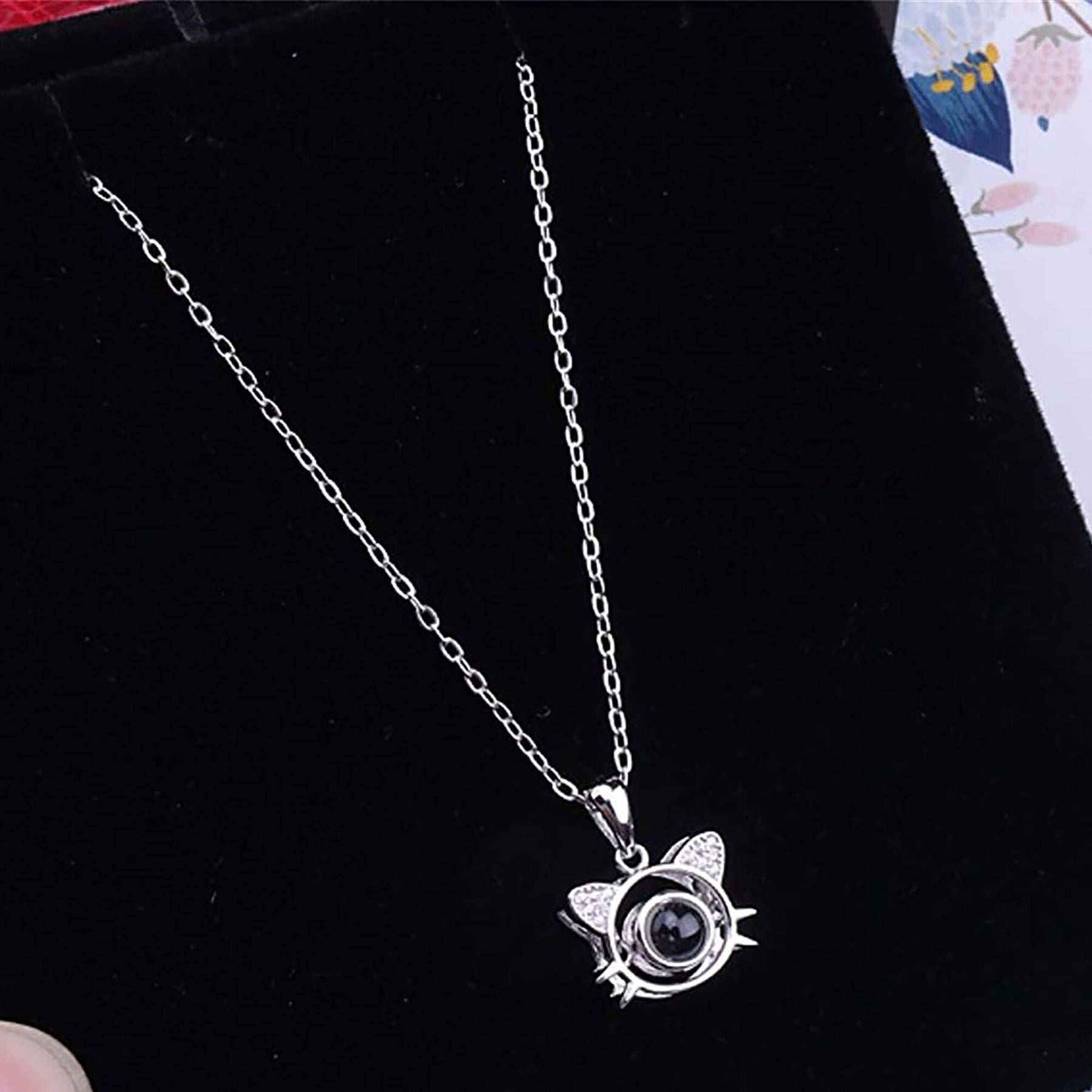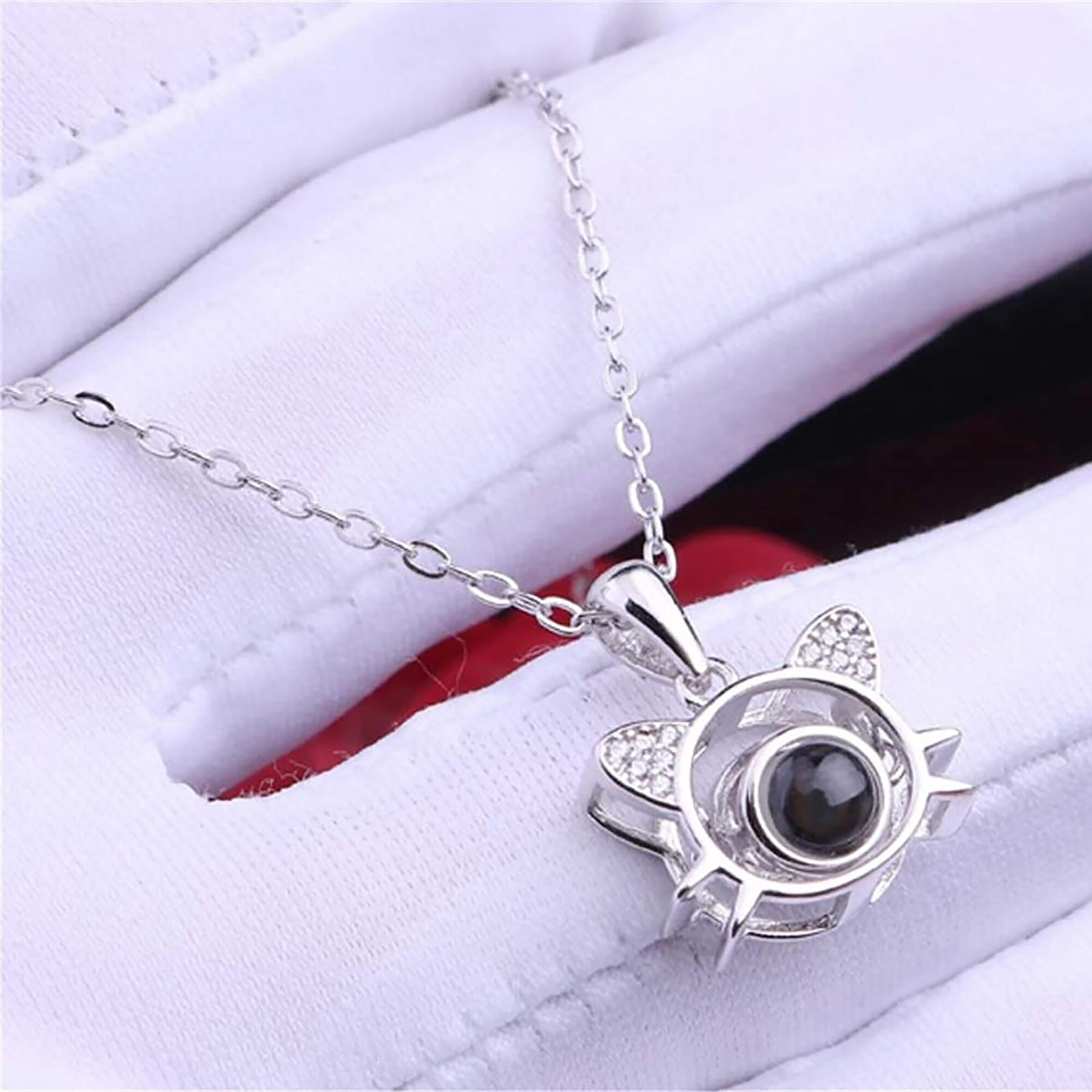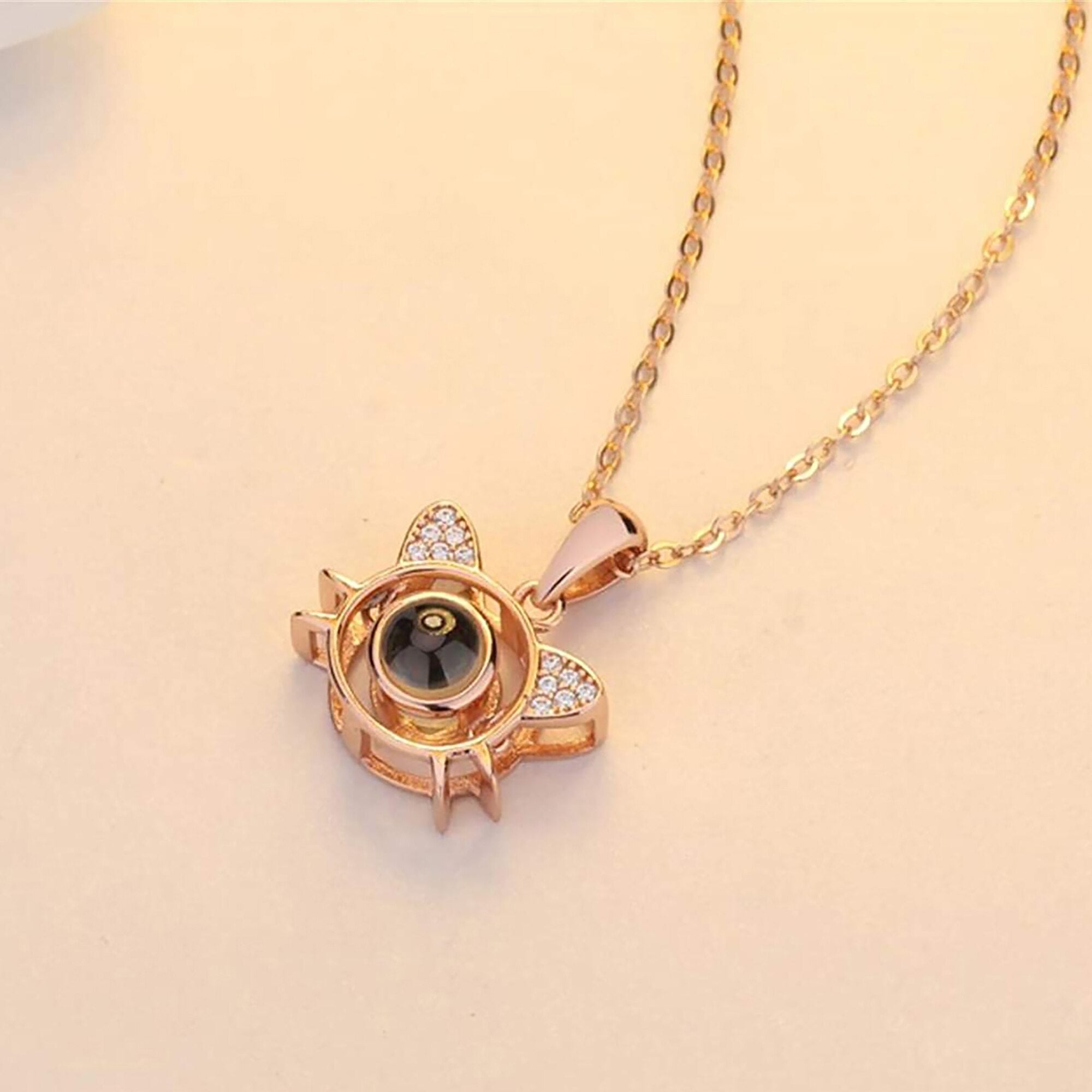 Cute Cat Shaped Projection Pendant Personalized Custom Photo Name Necklace