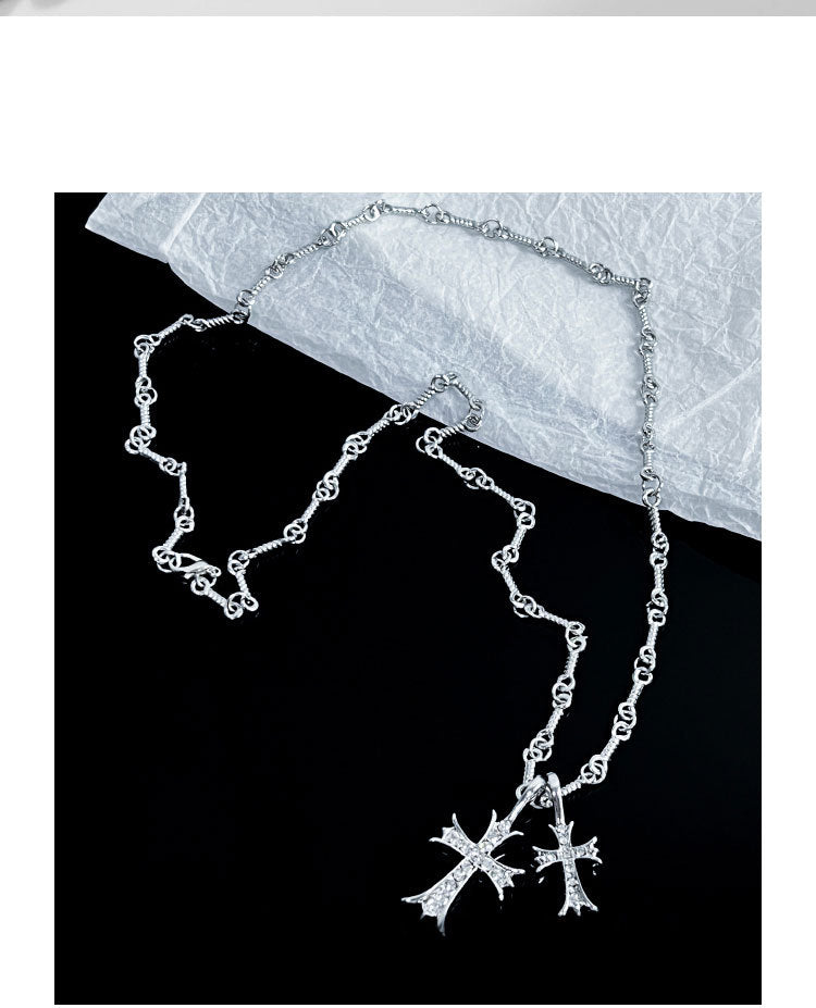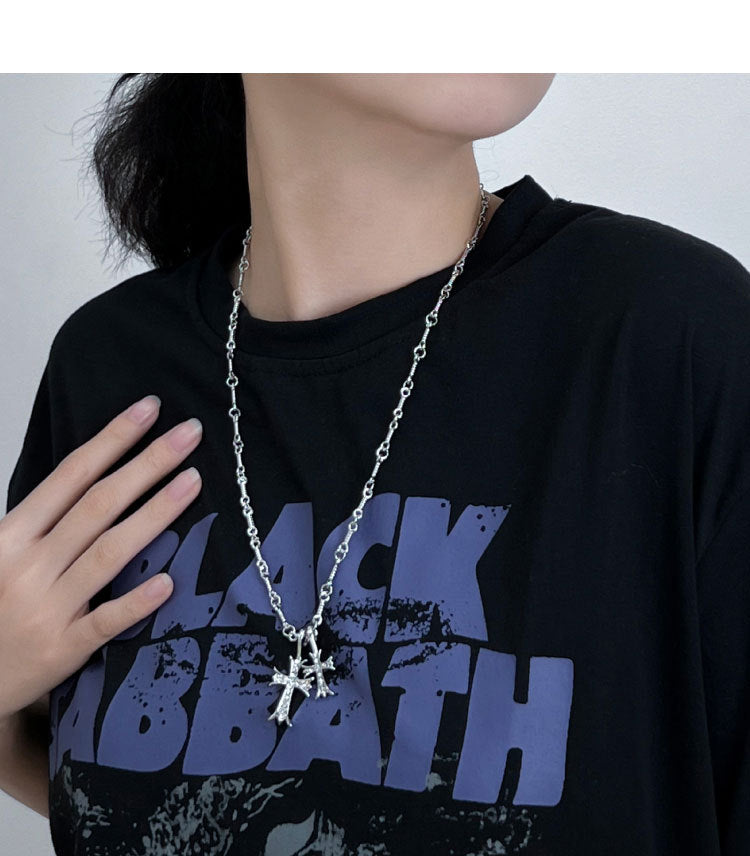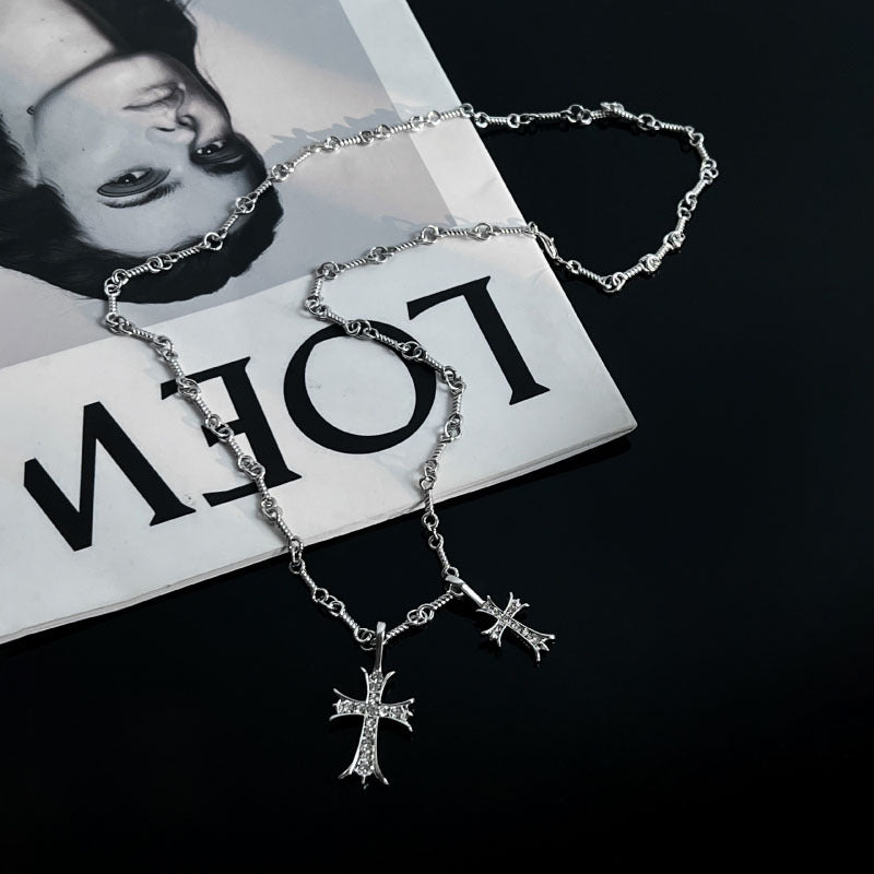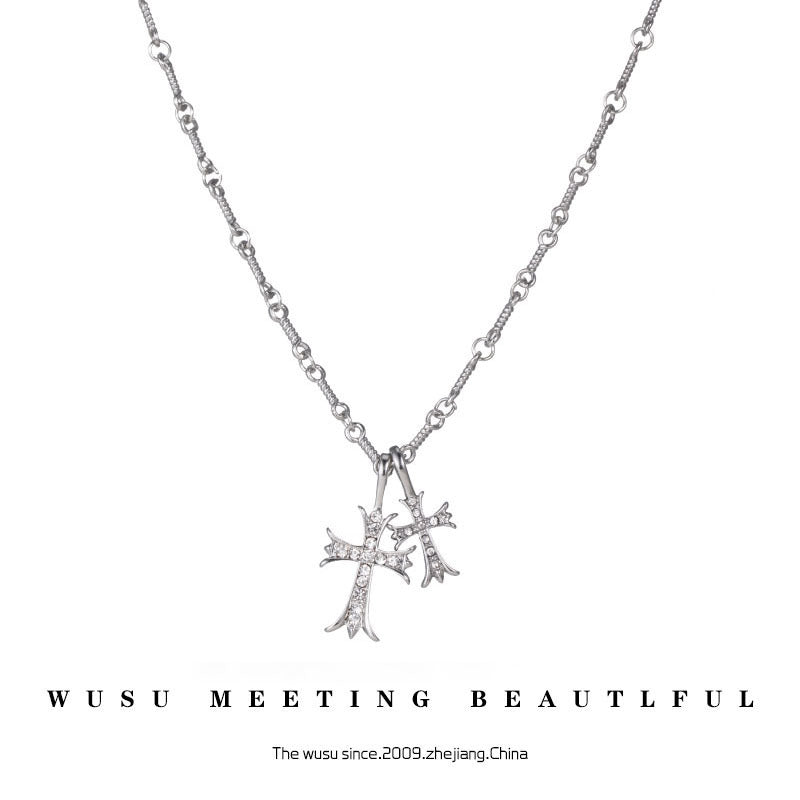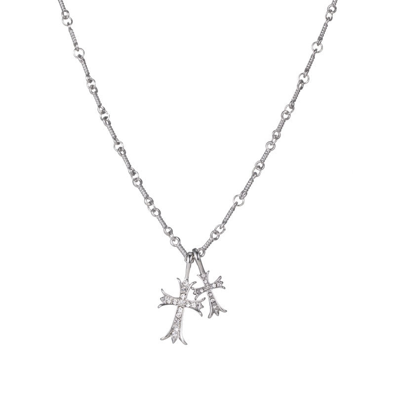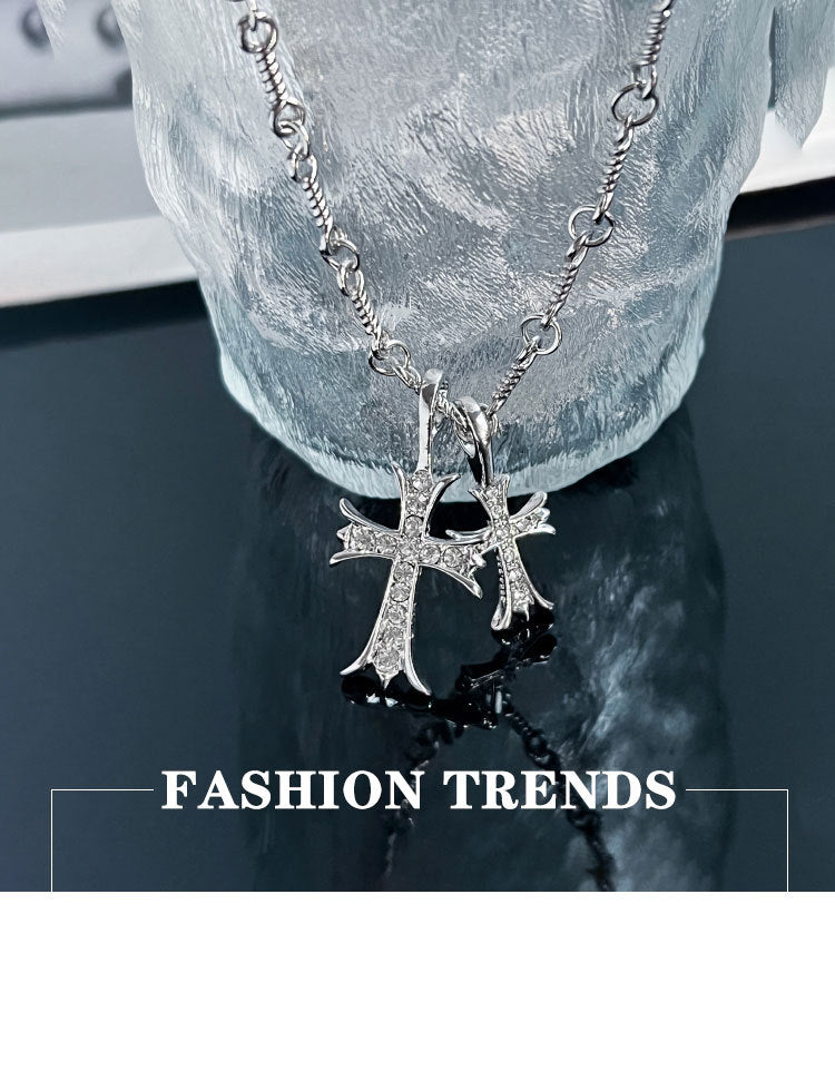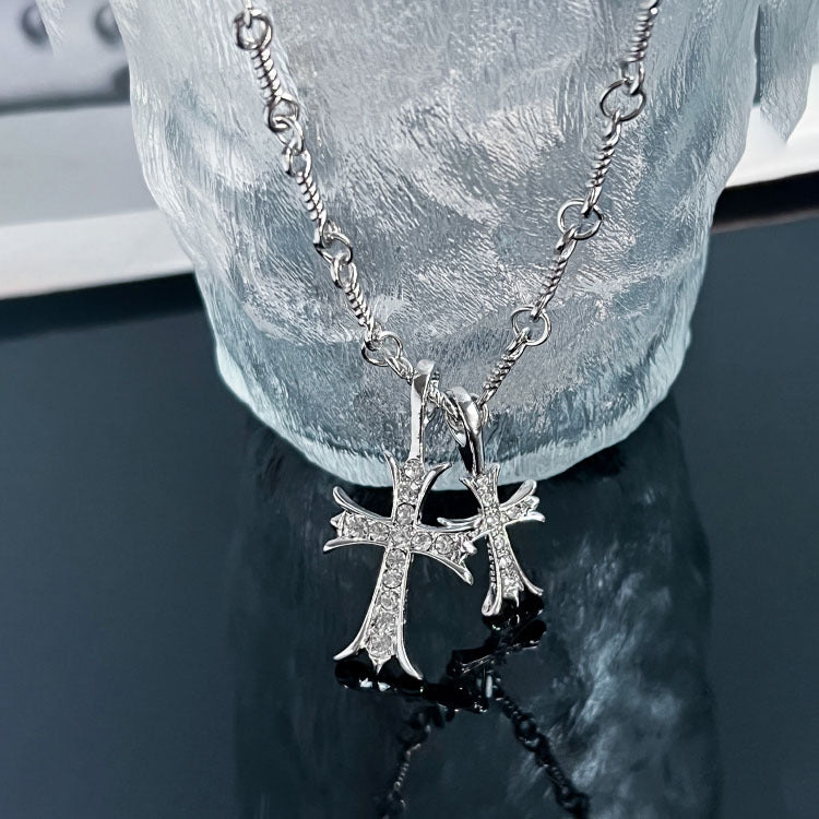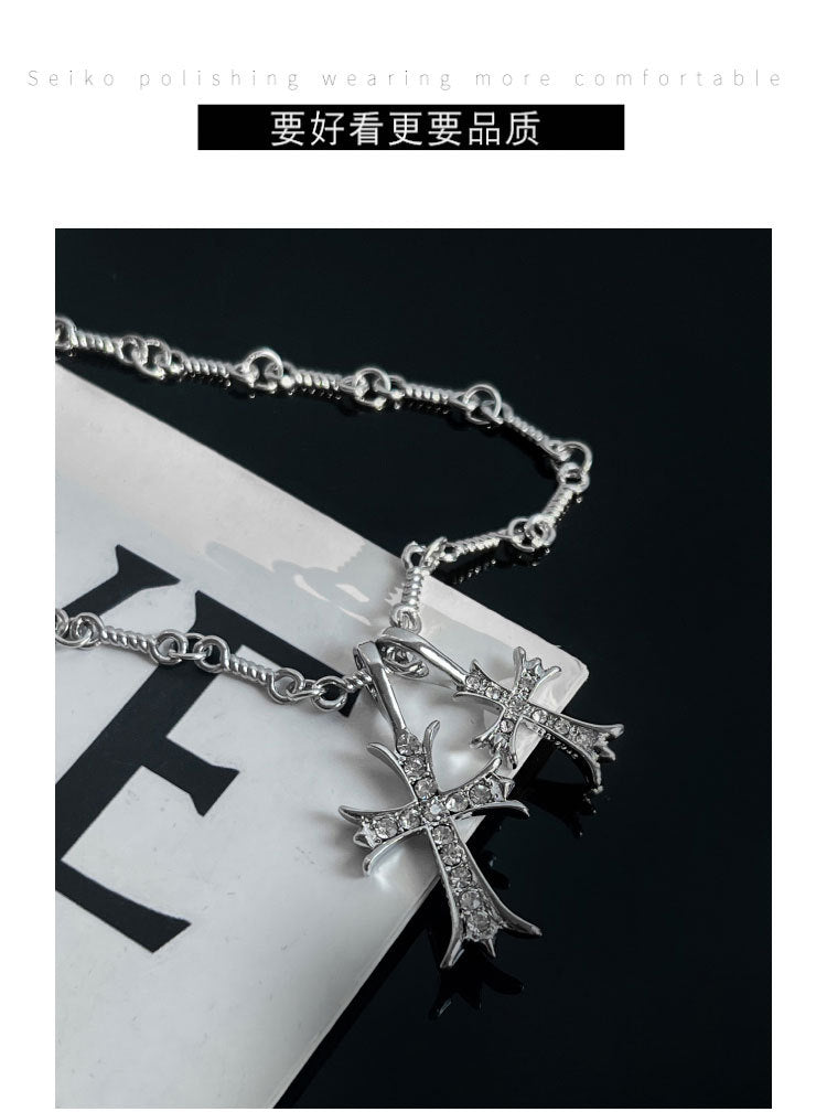 Double Cross Diamond Necklace Hip Hop Pendant