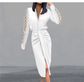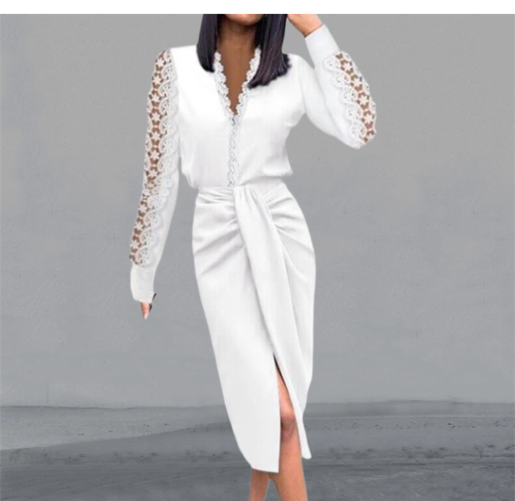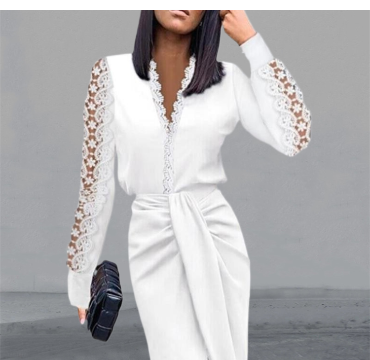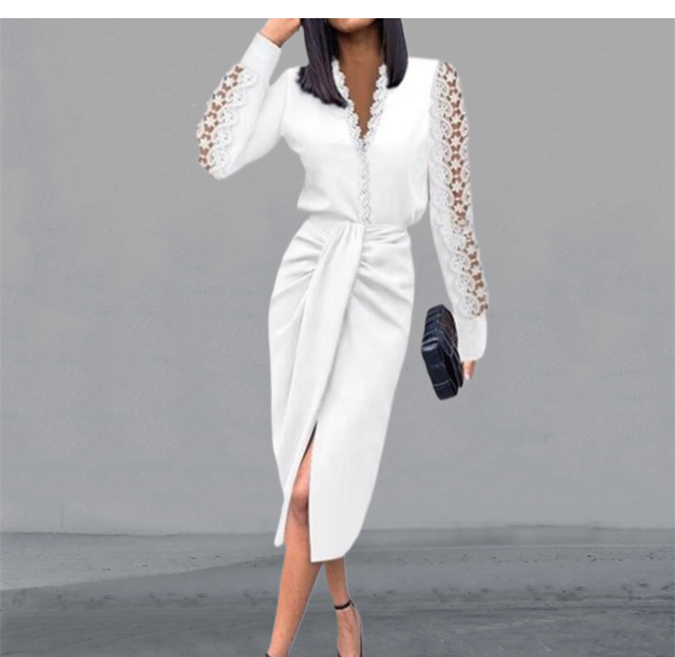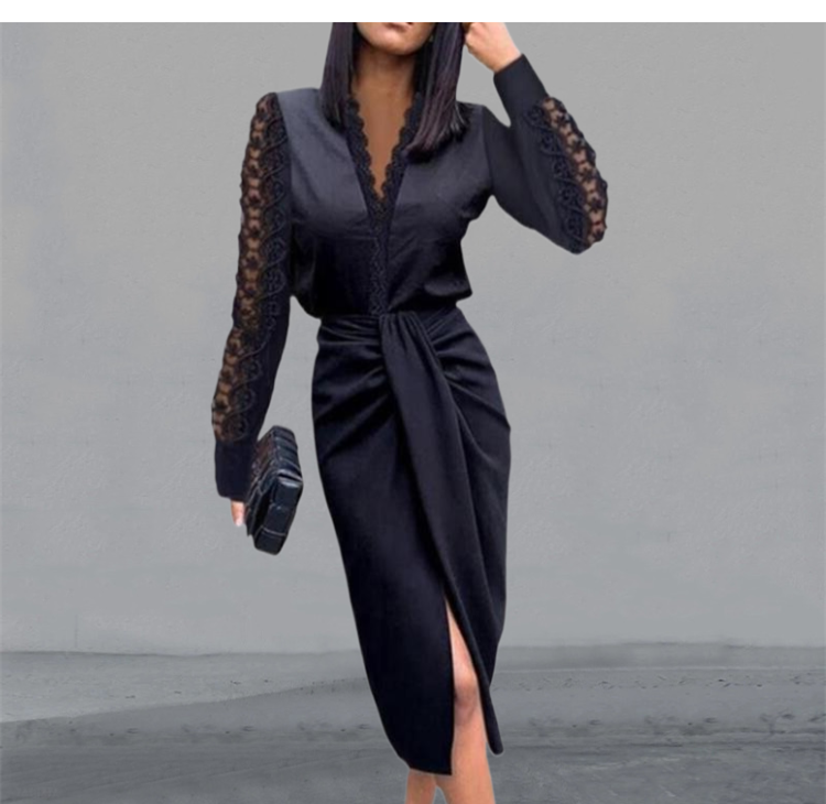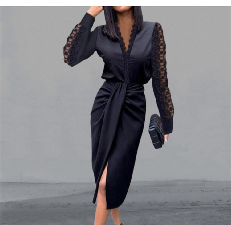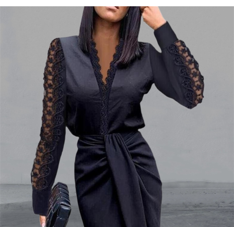 Dress Women Popular Sexy Dress V-neck Lace Long Sleeve Black Elegant Party Dresses