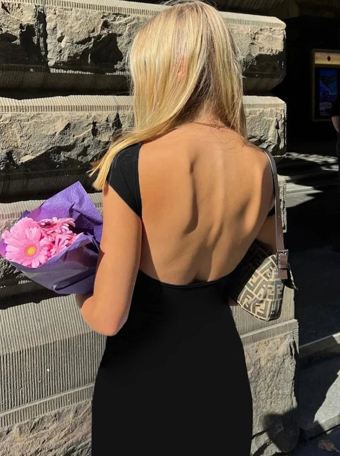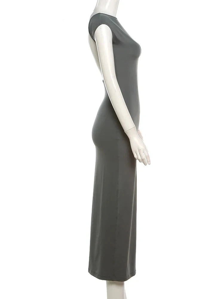 Elegant Short Sleeve Bodycon Maxi Dress O-neck Backless Lady Dresses