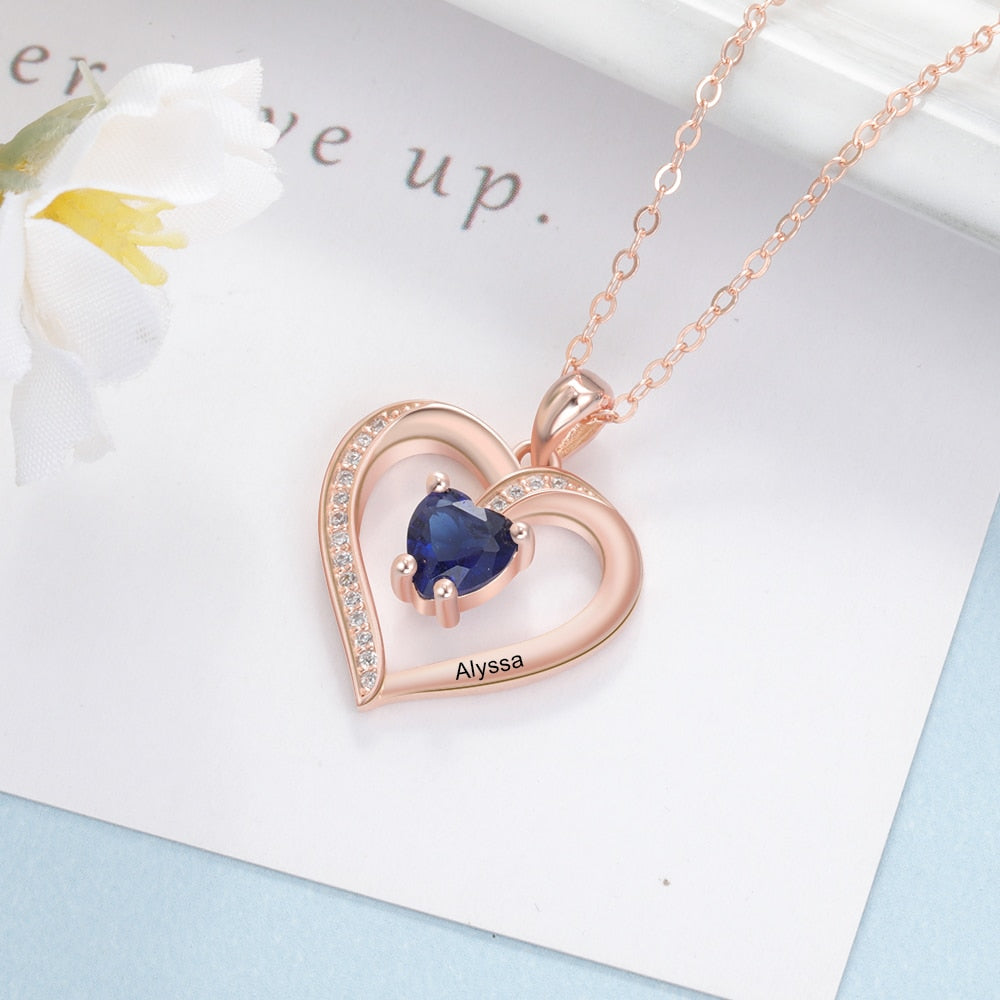 Engrave Name Heart Pendants with Customize Birthstone Necklace