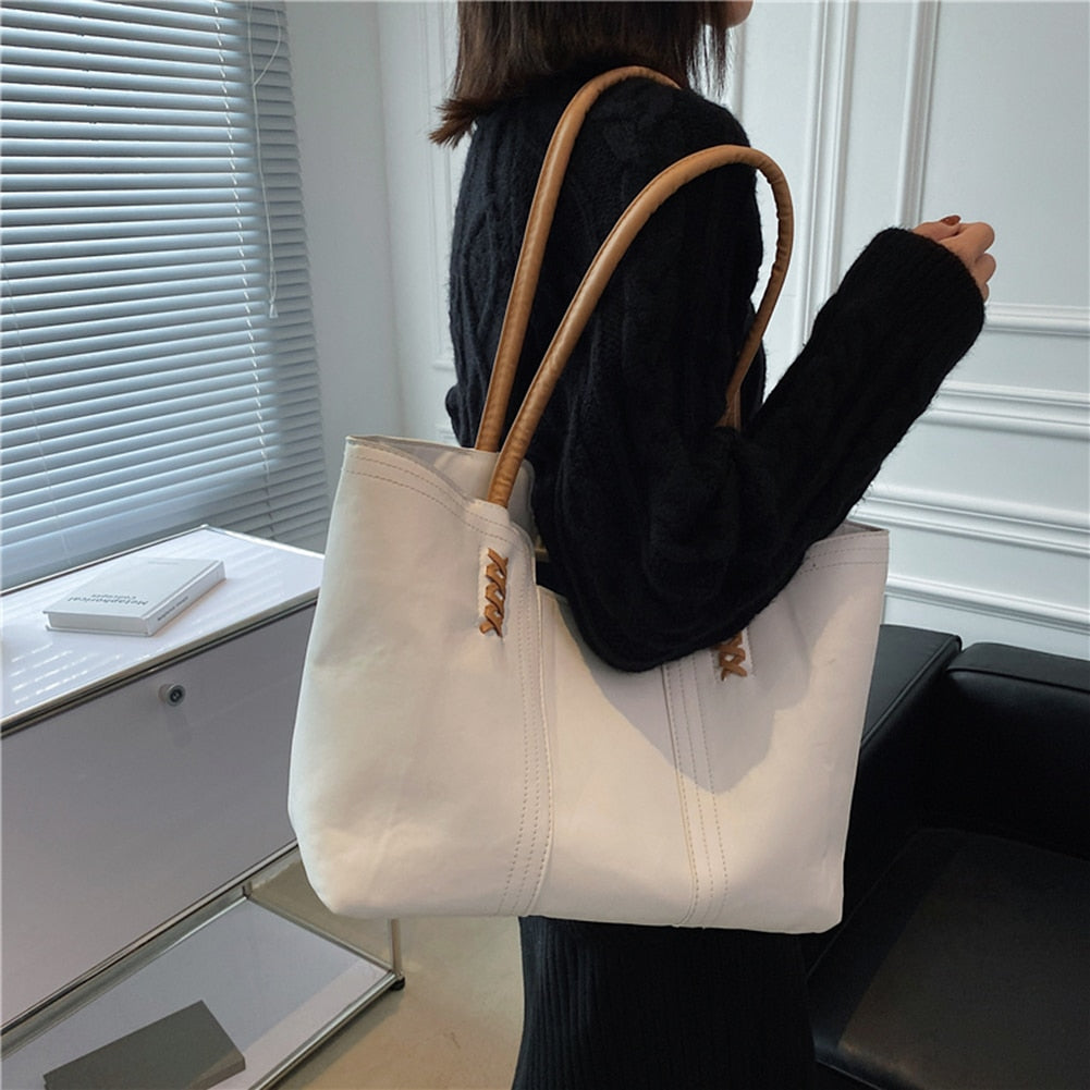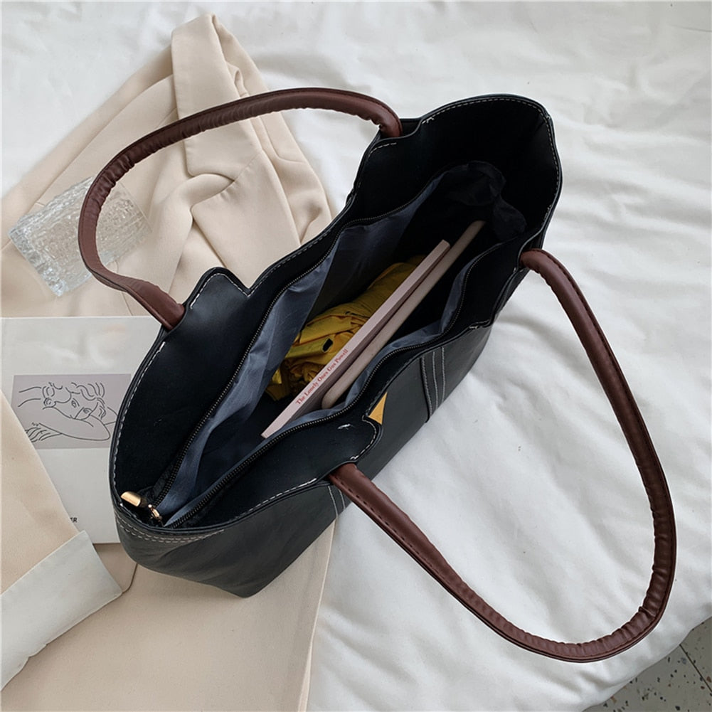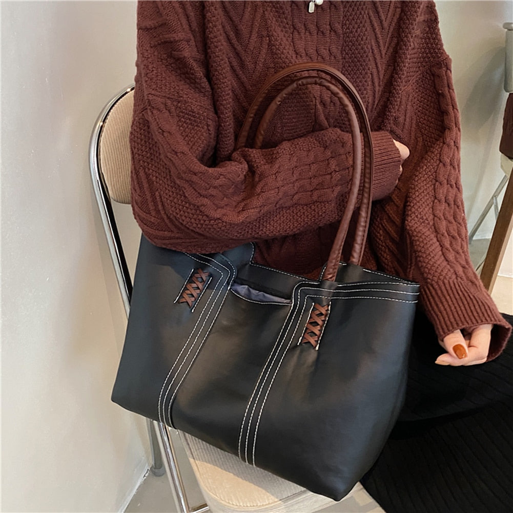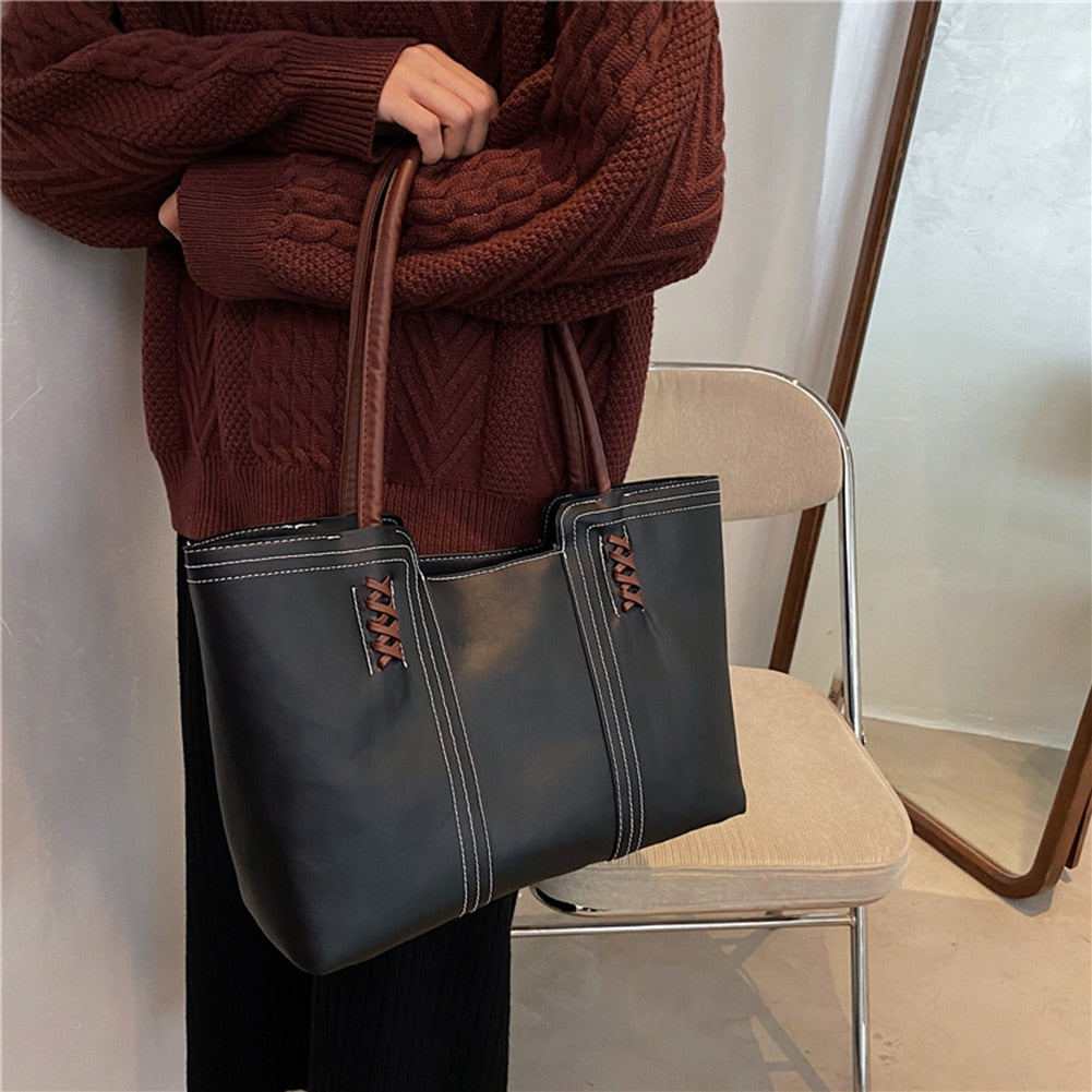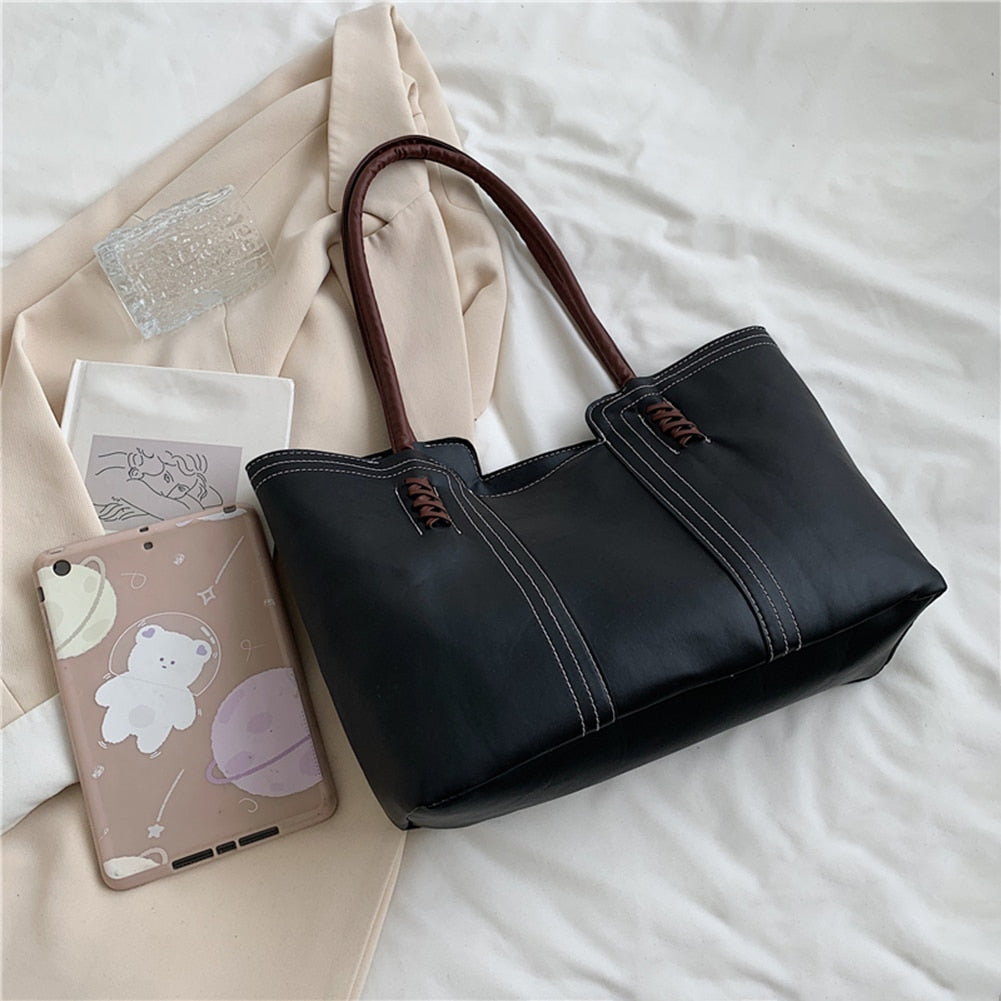 Fashion Women PU Leather Solid Color Shoulder Shopping Bag