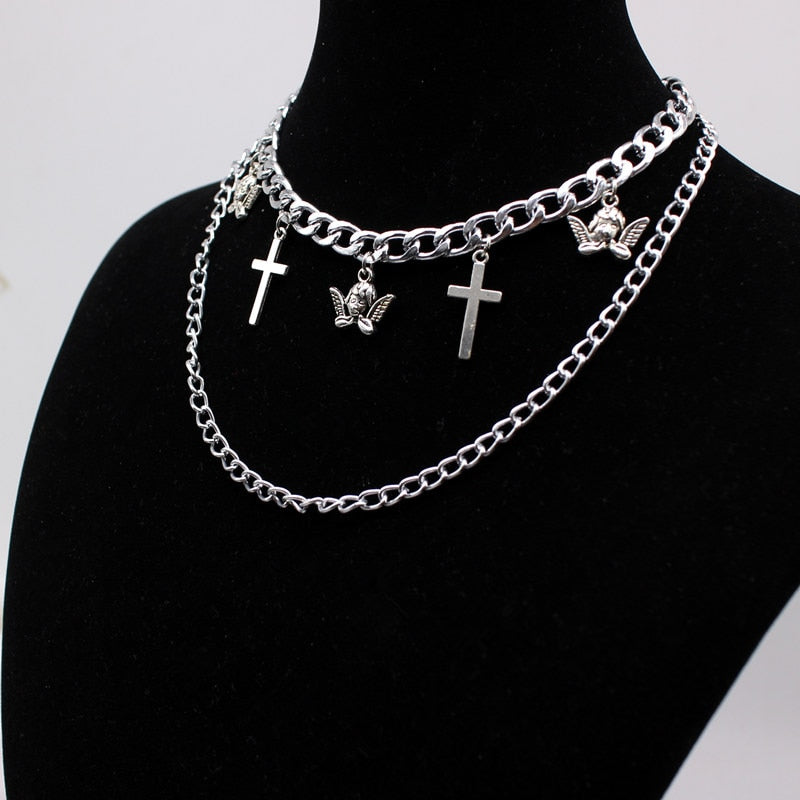 Goth Streetwear Necklaces Grunge Cross Pendants Neck Chain Indie Jewelry