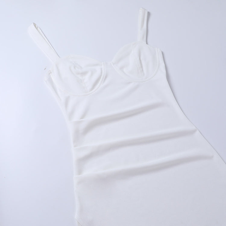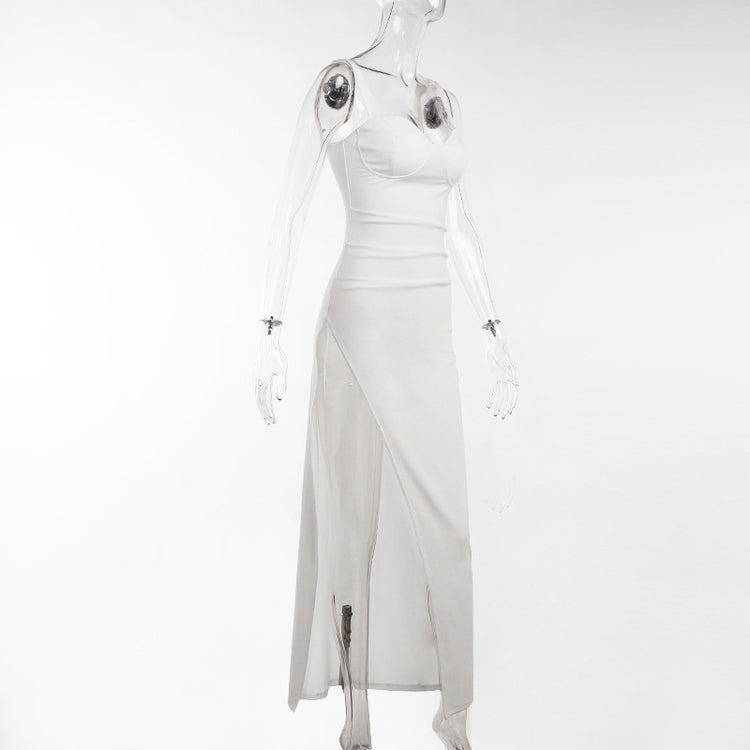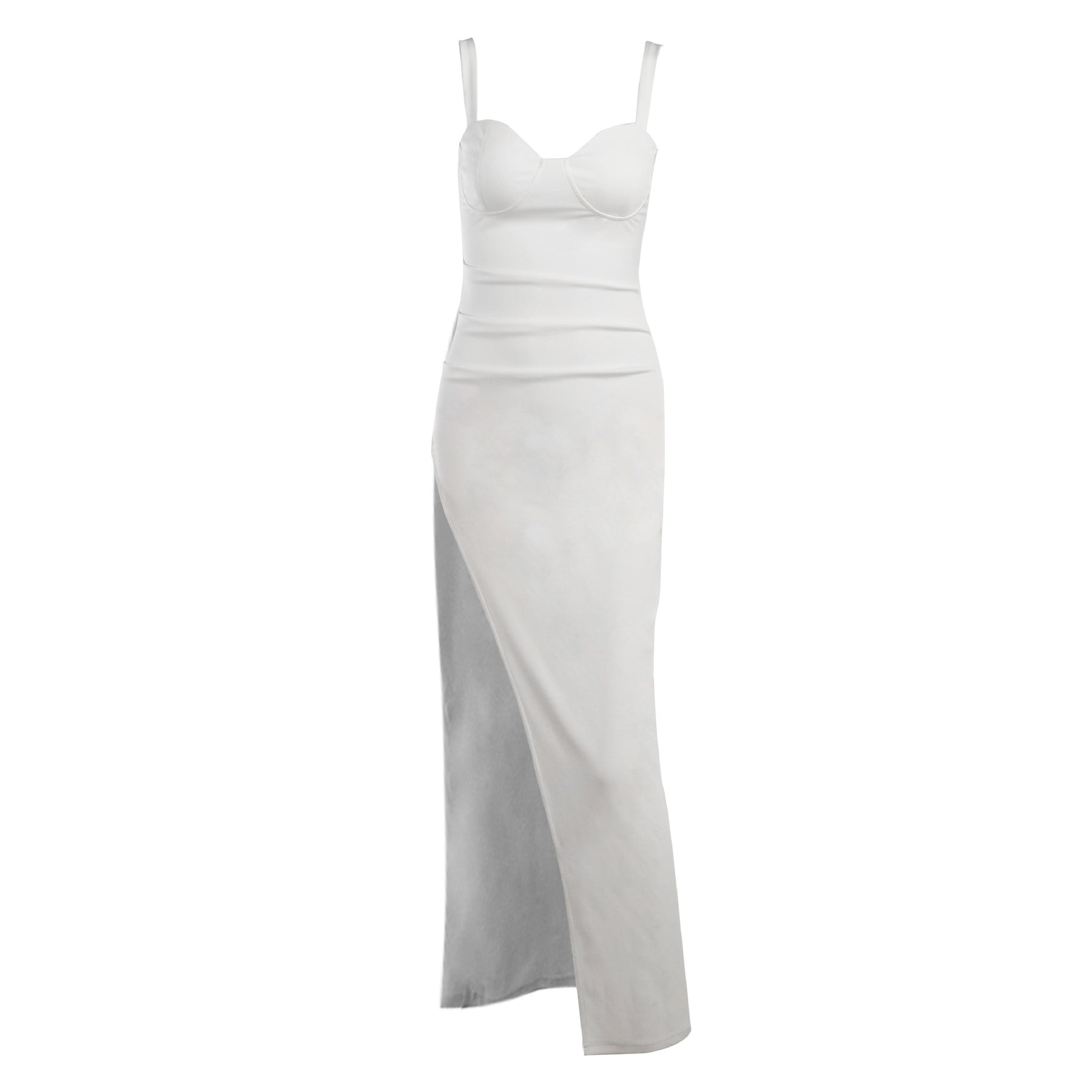 High Split Ankle-length Party Dresses Women Solid White Spaghetti Strap Dress Y2K