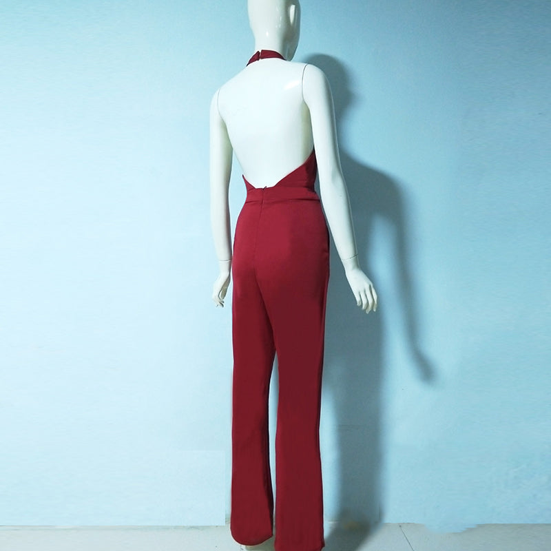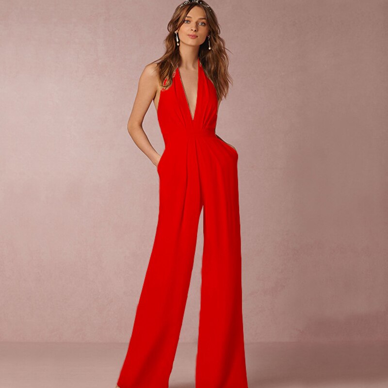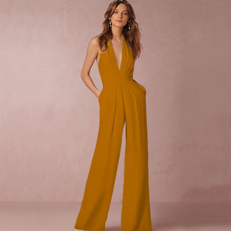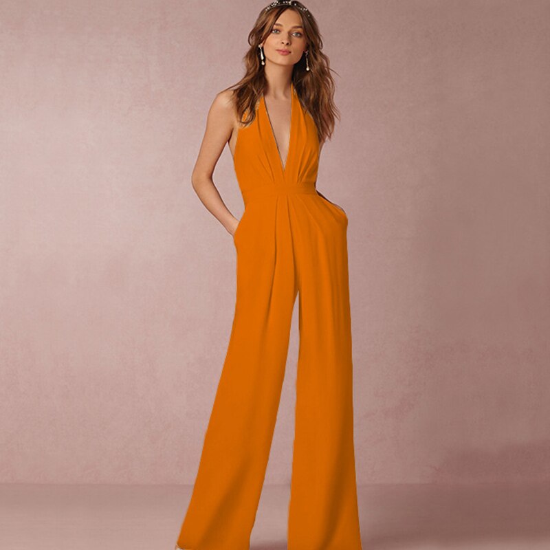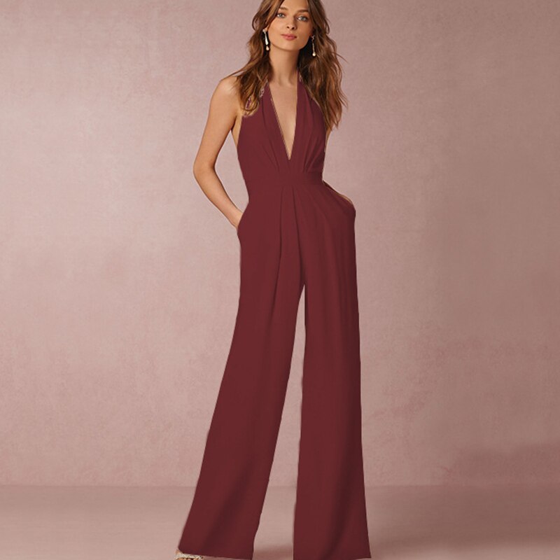 Jumpsuits for Women 2022 Sexy Polyester Backless Wide Leg Pants Sleeveless Summer Rompers