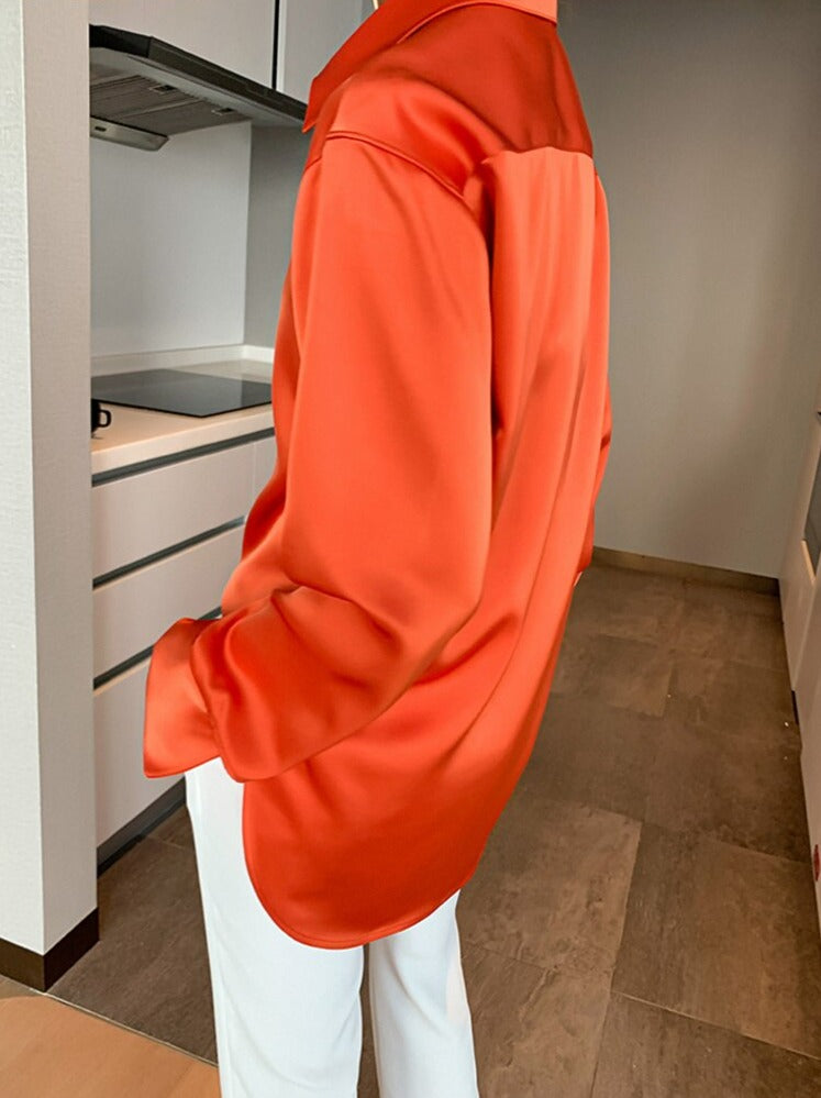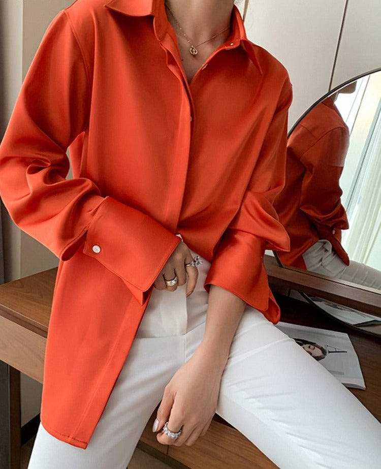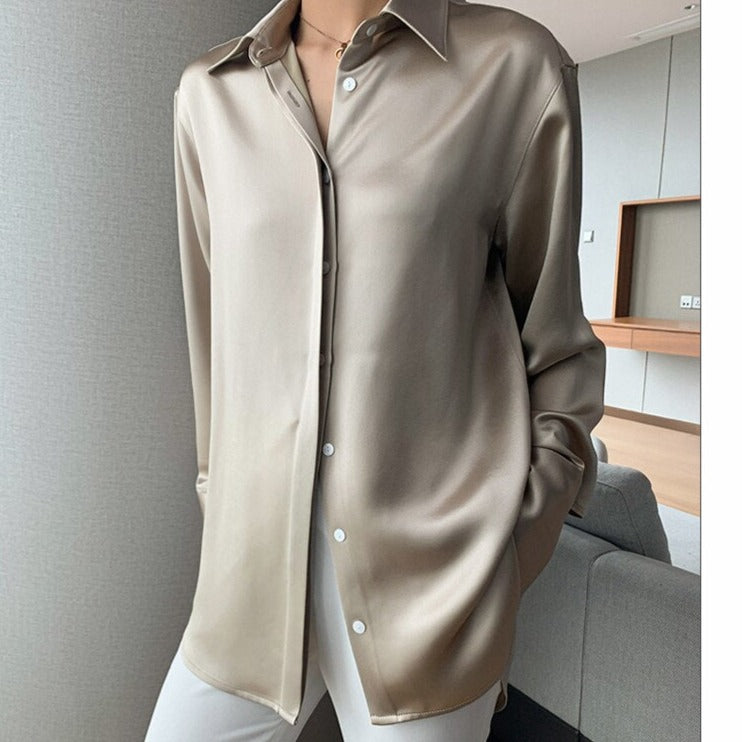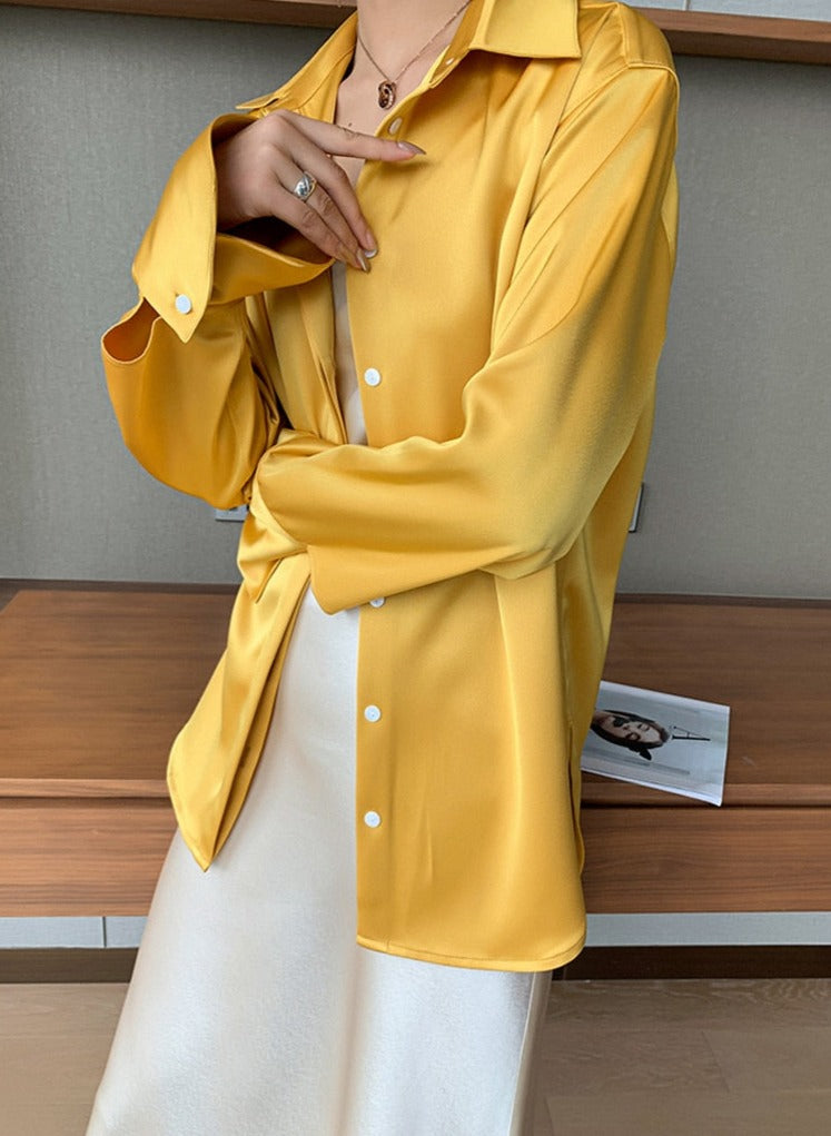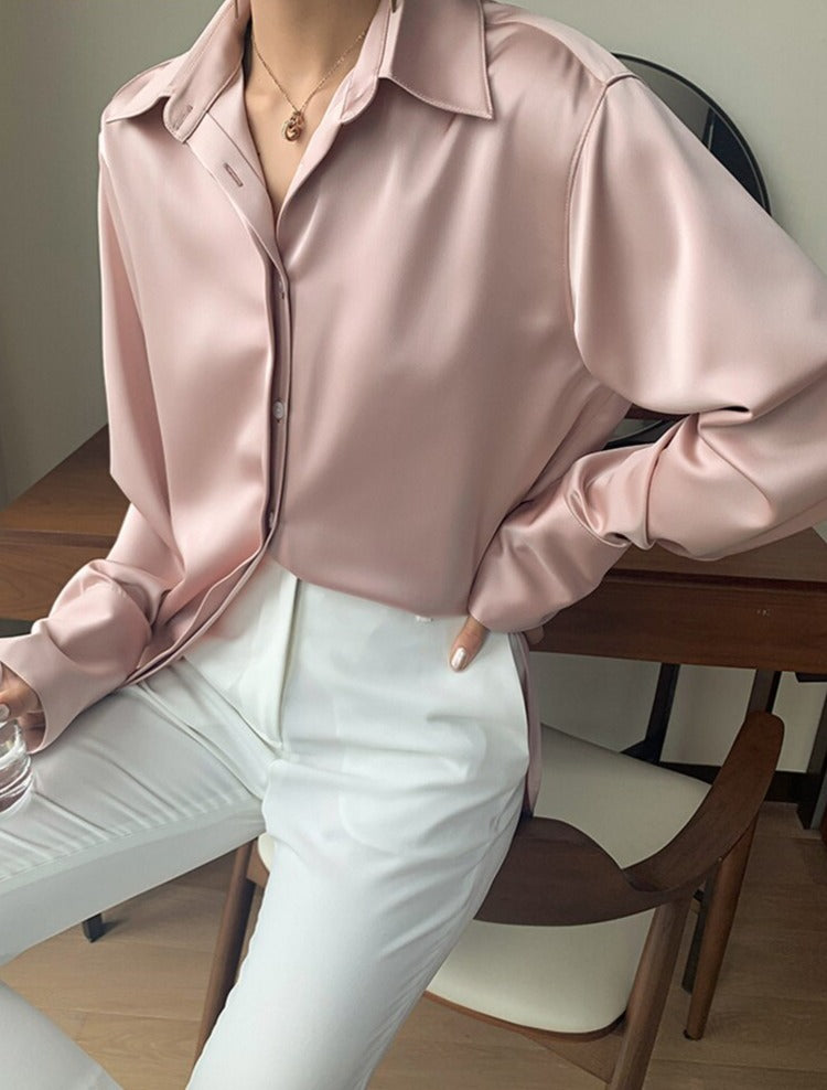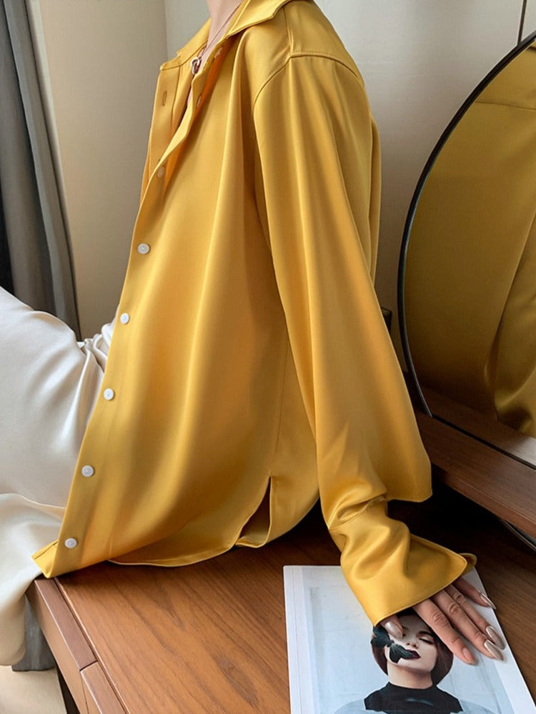 Loose Single-breasted Female Satin Shirts Tops Spring Summer Blusas