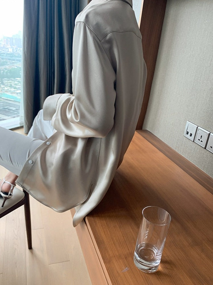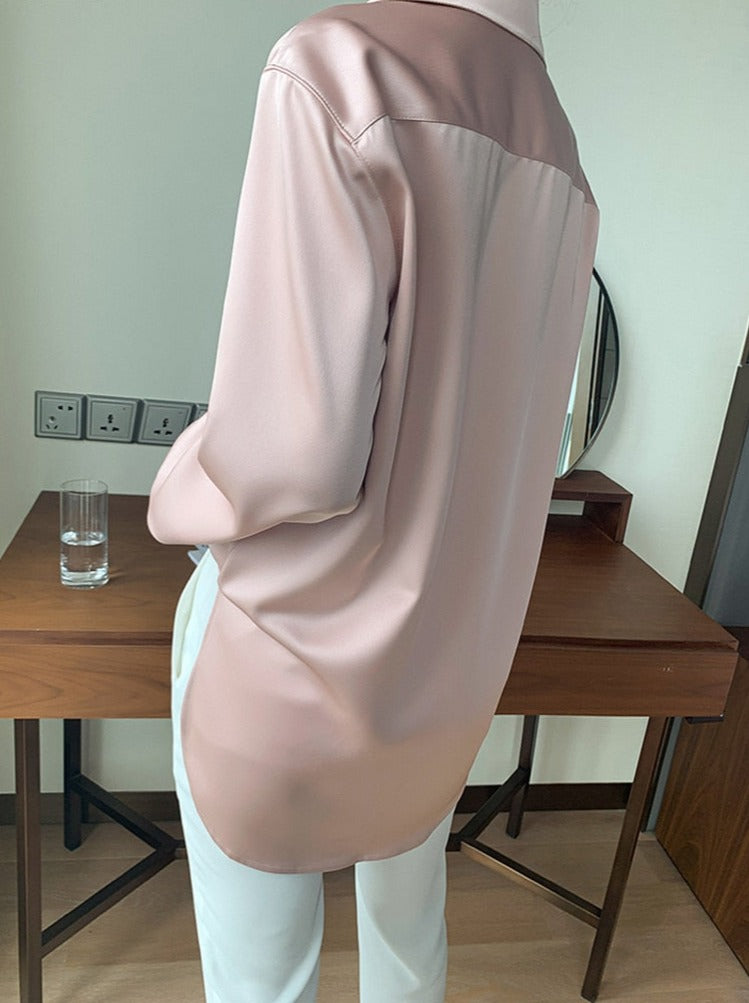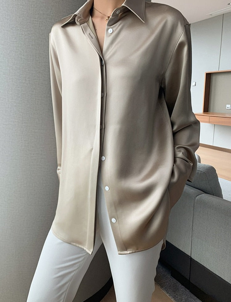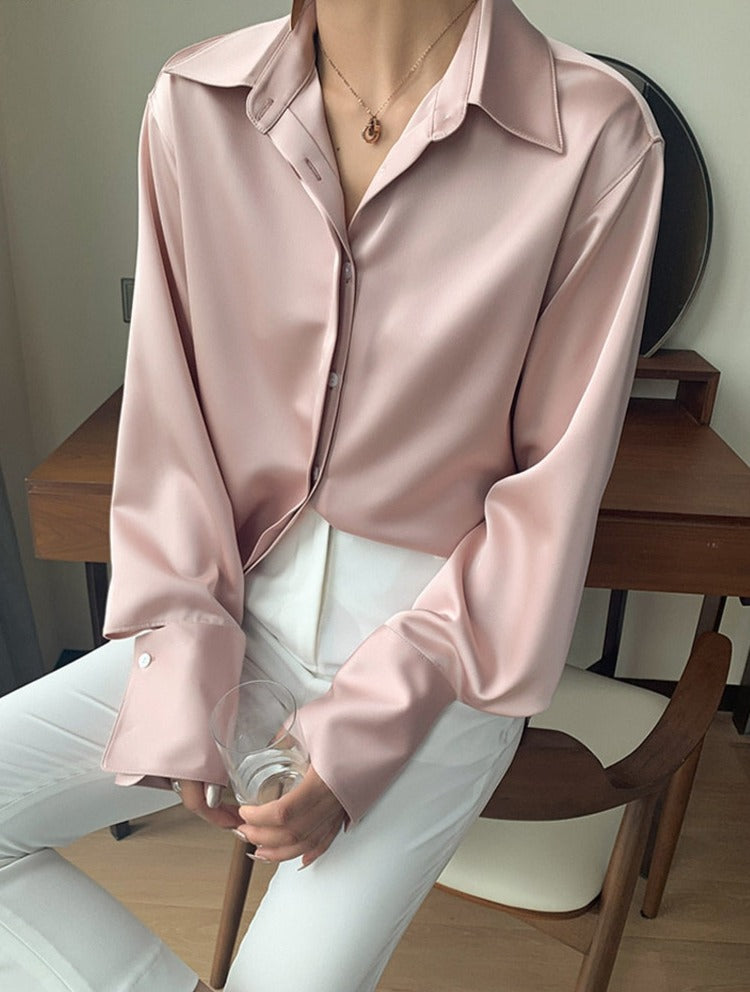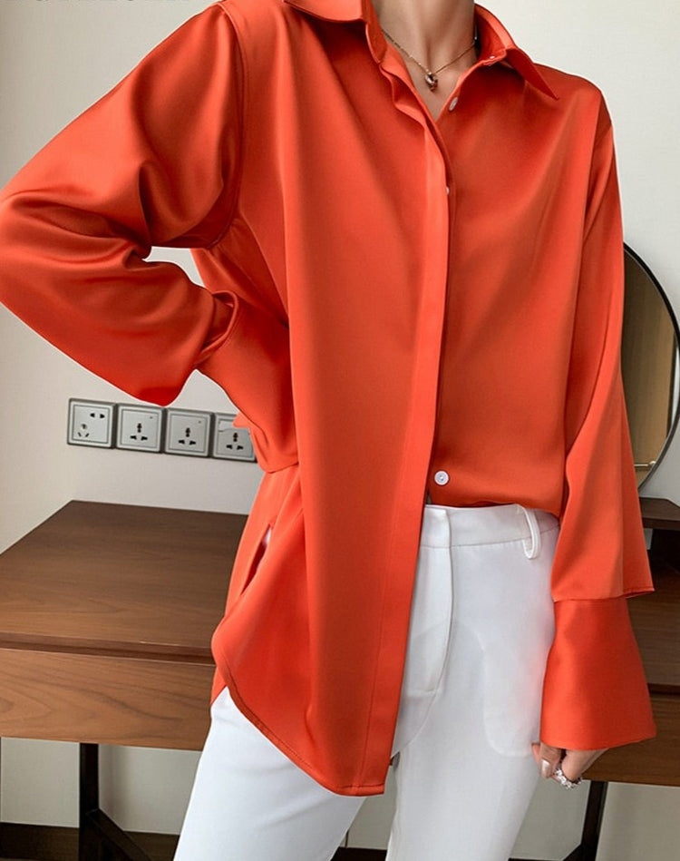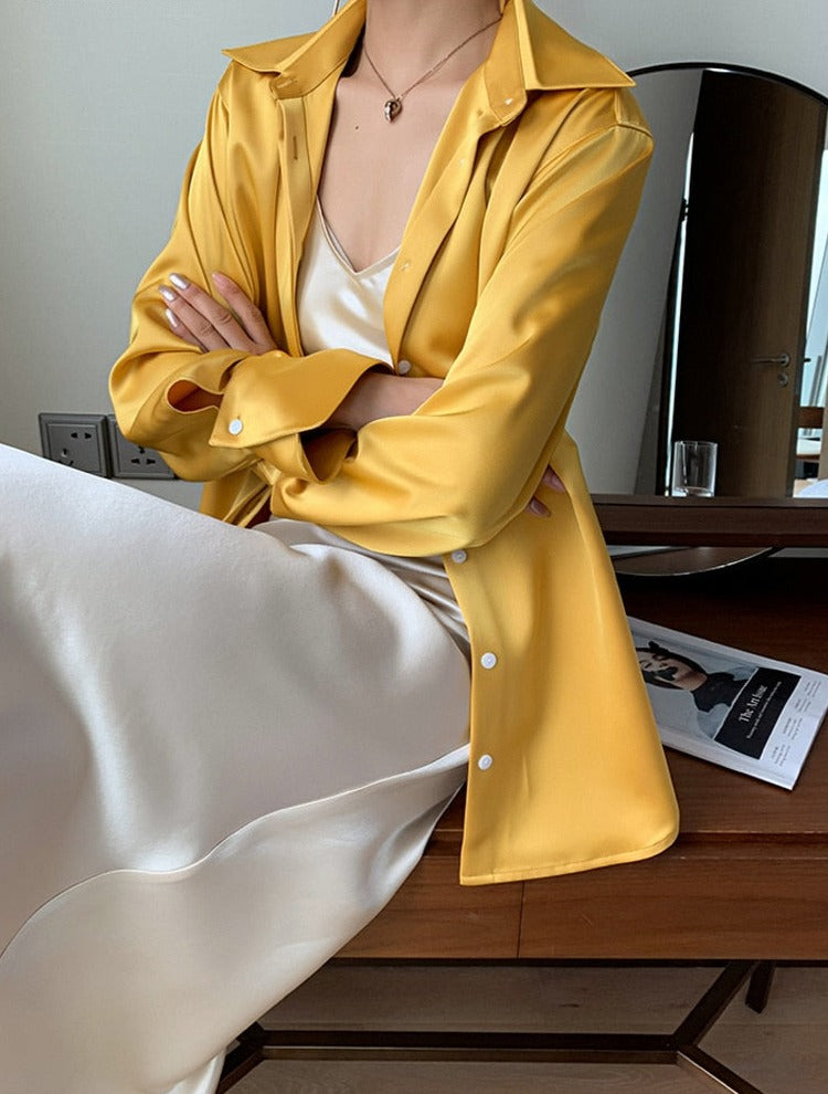 Loose Single-breasted Female Satin Shirts Tops Spring Summer Blusas