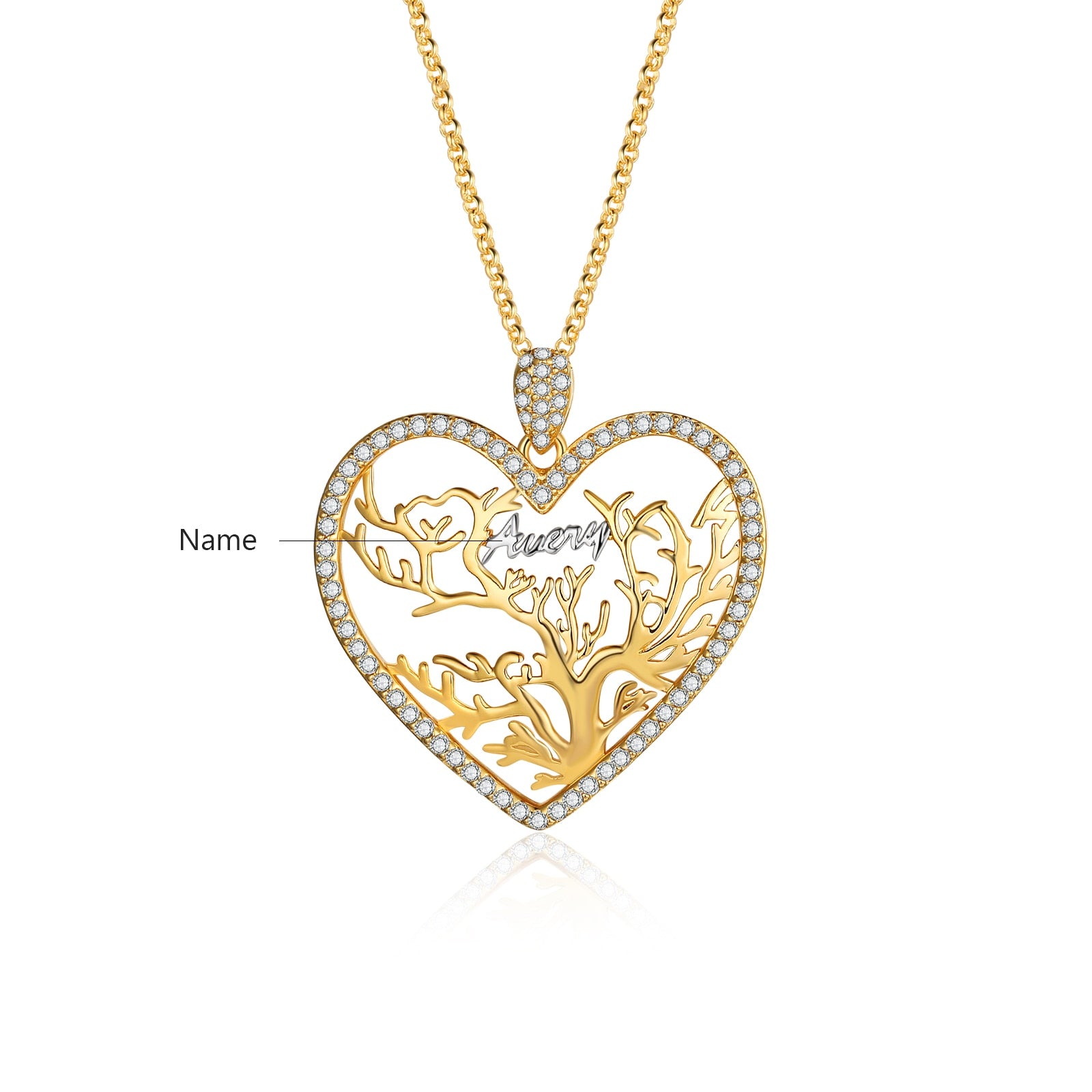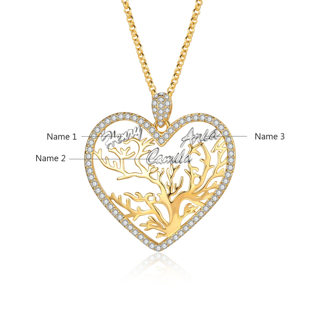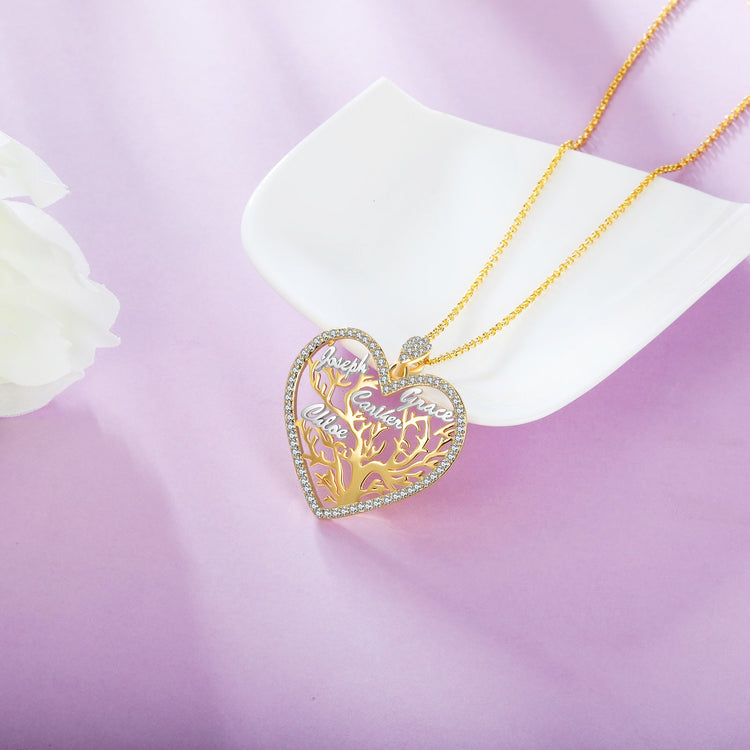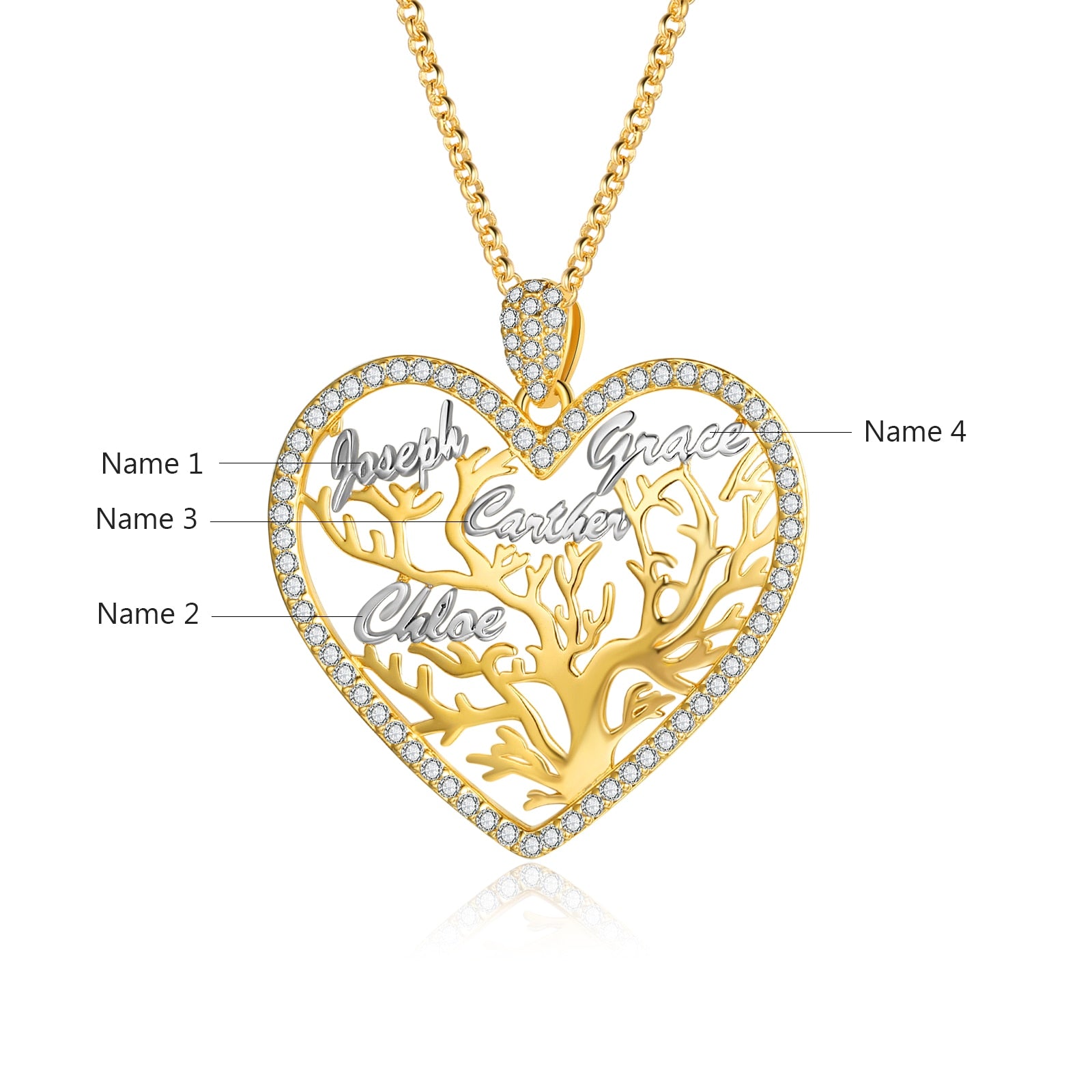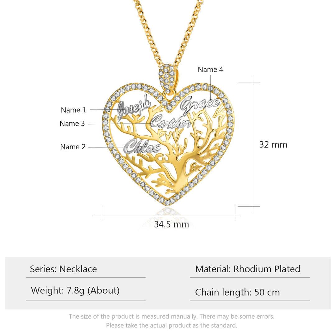 Multi-name Mixed Color Heart Necklace Family Tree of Life Nameplate Pendant
