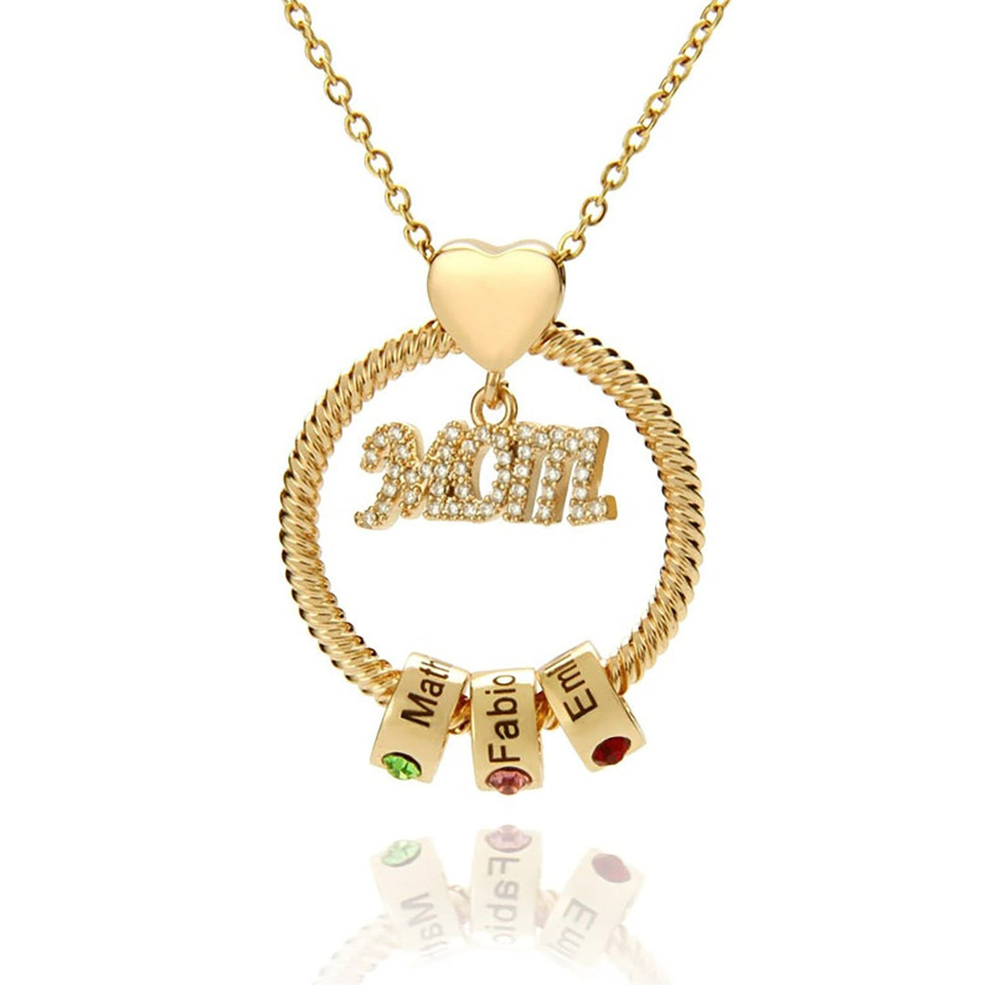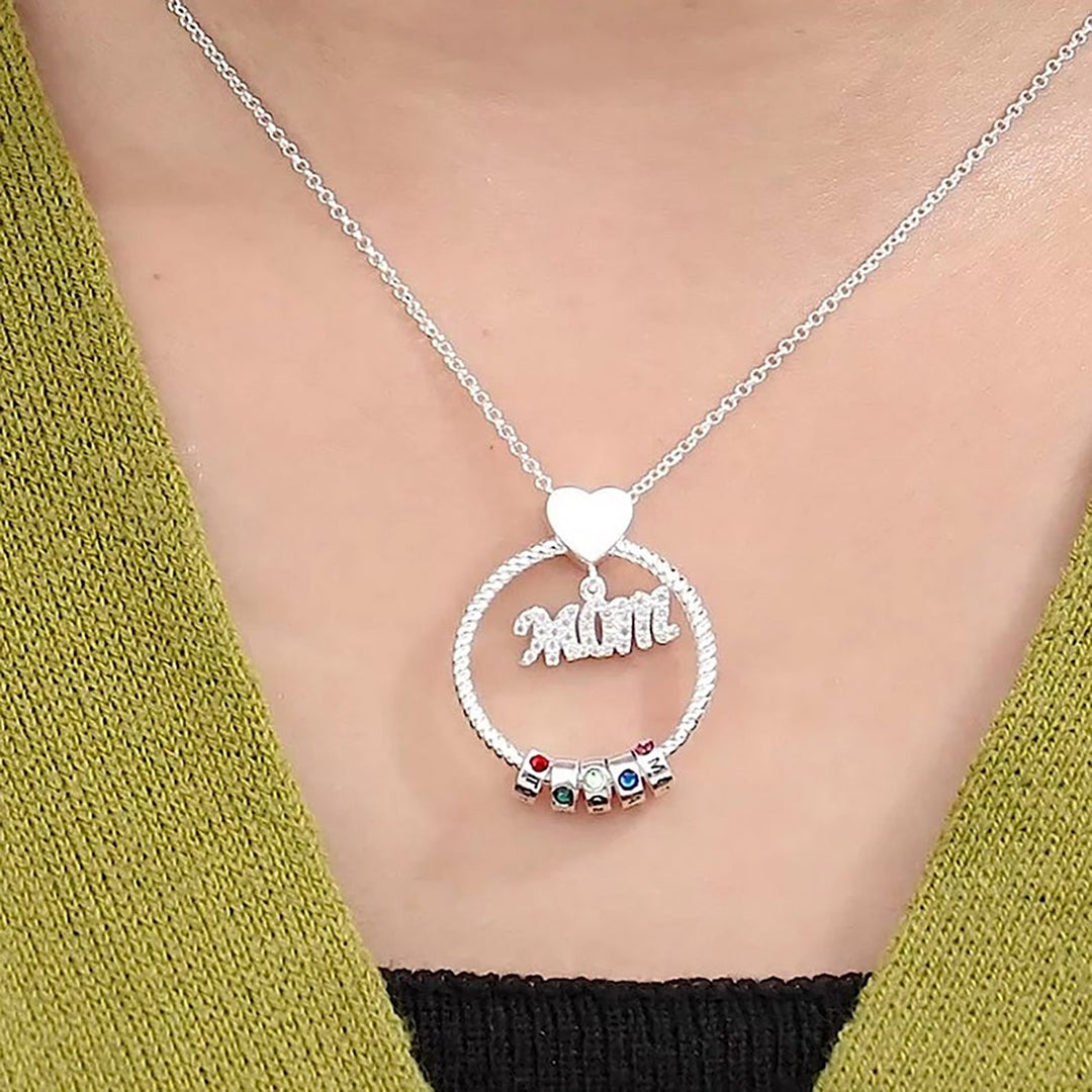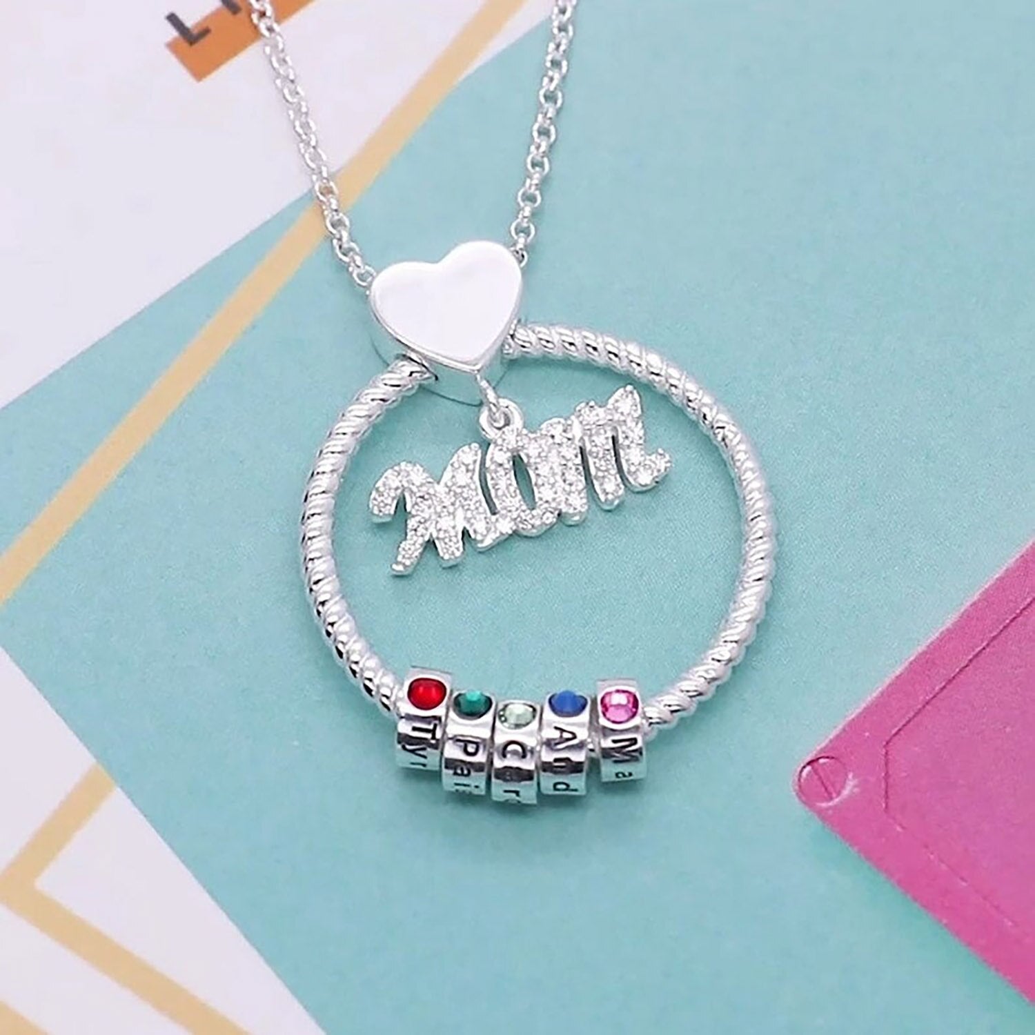 Personalised Circle Pendant Engraved Name Necklace With Birthstone Family Necklace