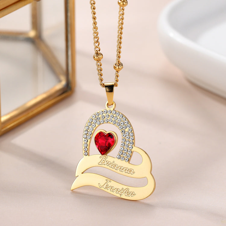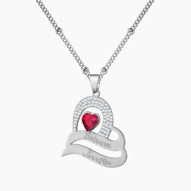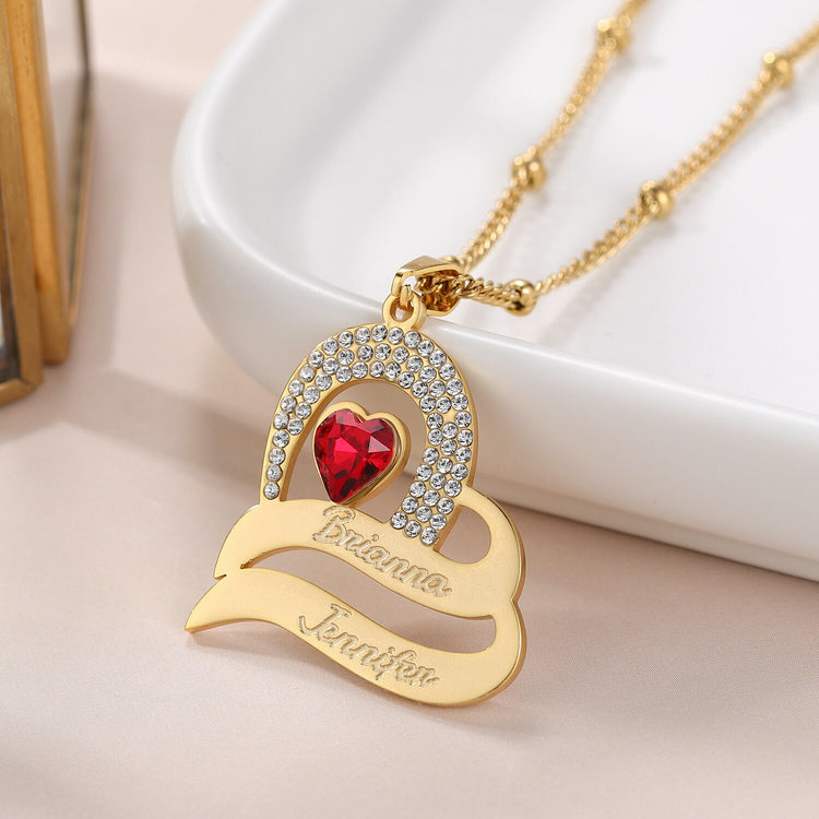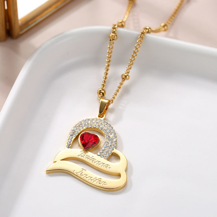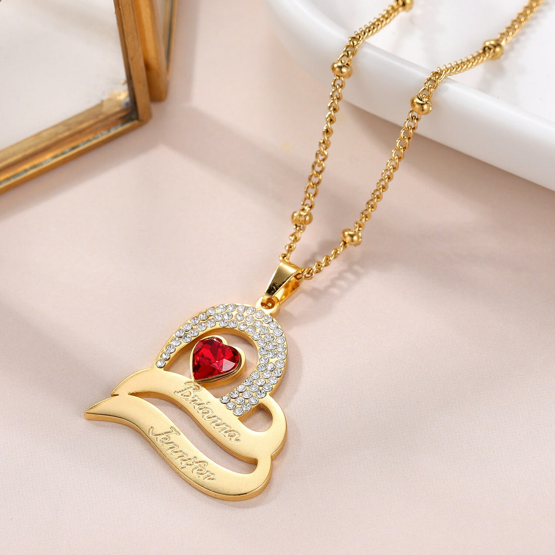 Personalized Delicate Cubic Zirconia Stones Engraved Names Custom Heart Pendant