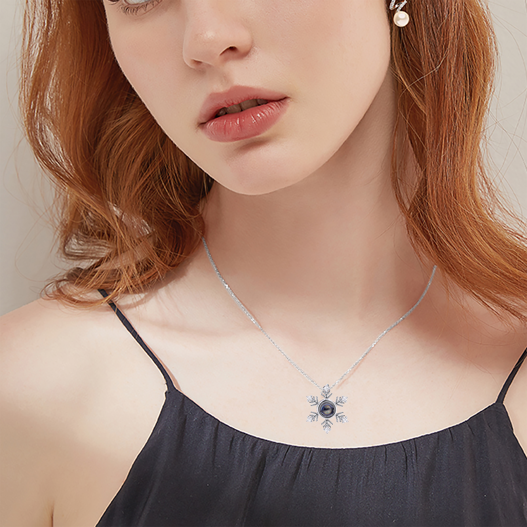 Photo Projection snowflake shape Necklace Pendant Jewelry for Lover Girlfriend 2022