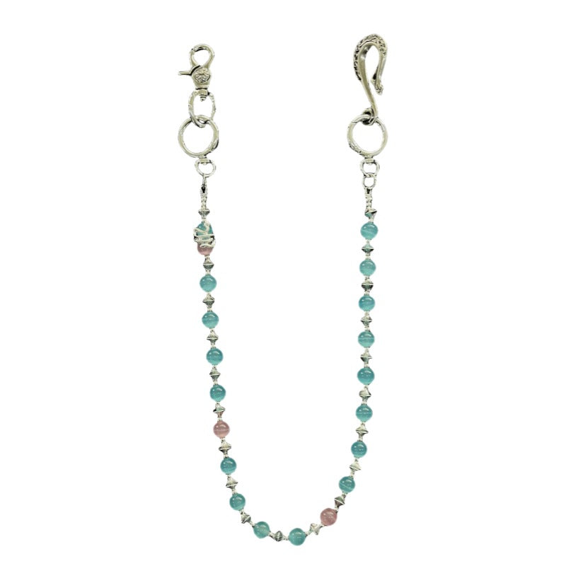 red and blue cat's eye stone chain