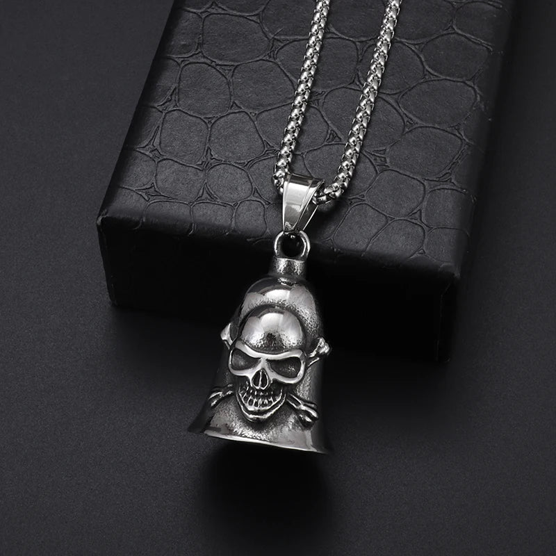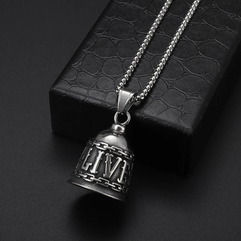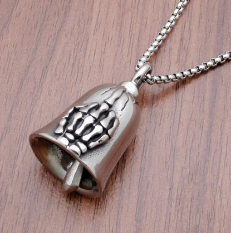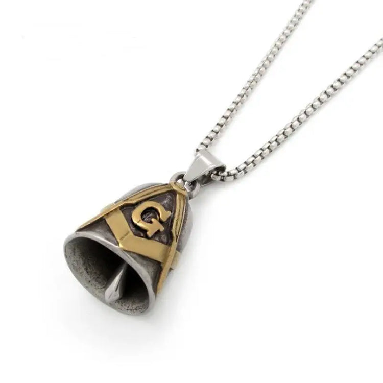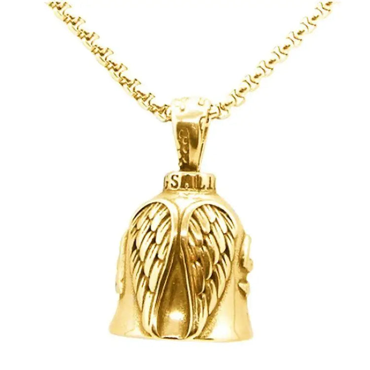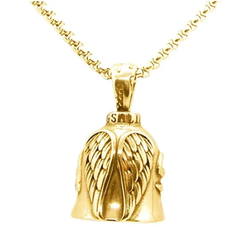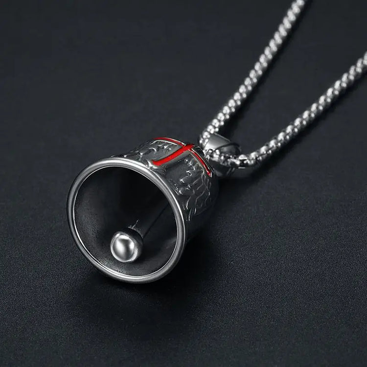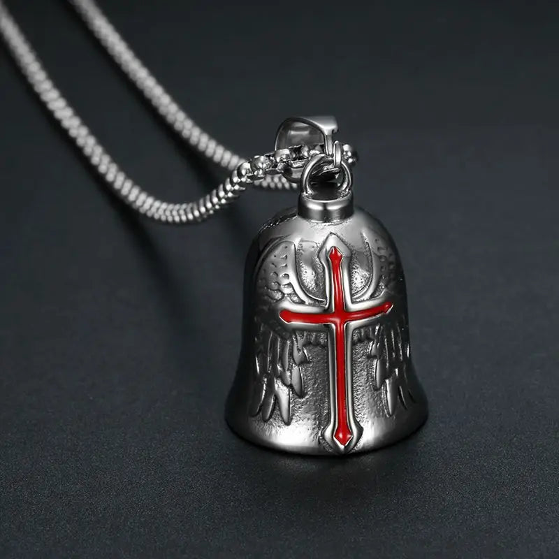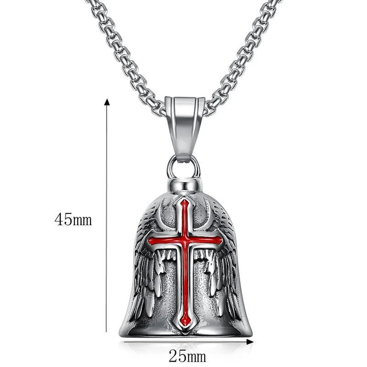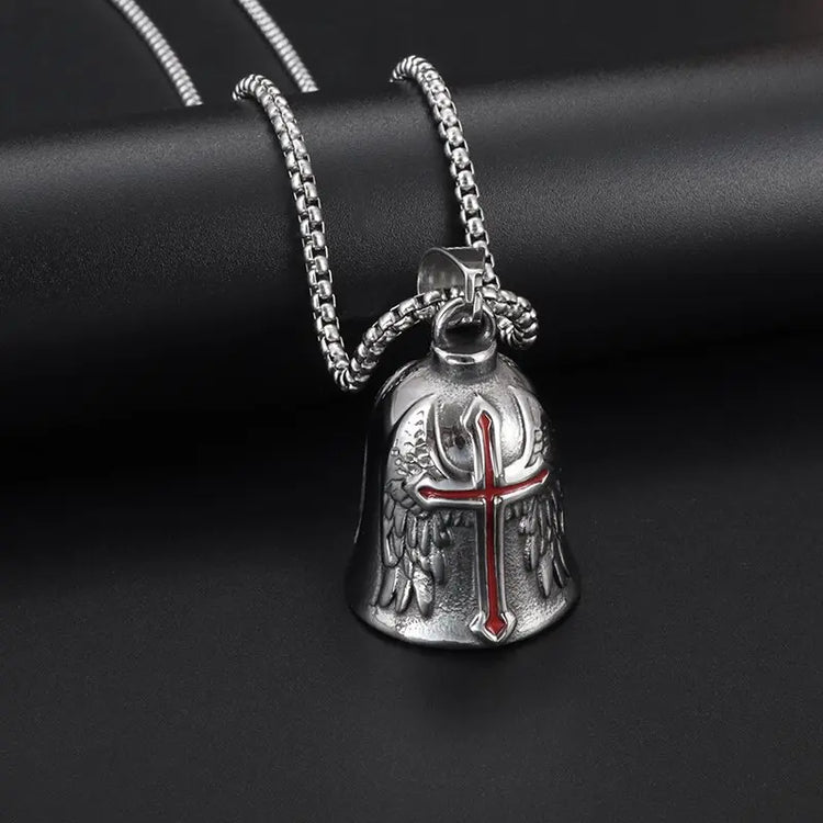 Red Cross Silver-Plated Wings Motorcycle Bell Pendant Necklace