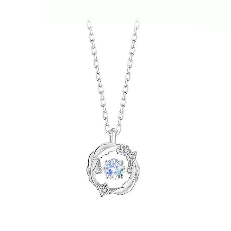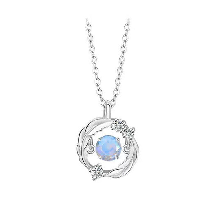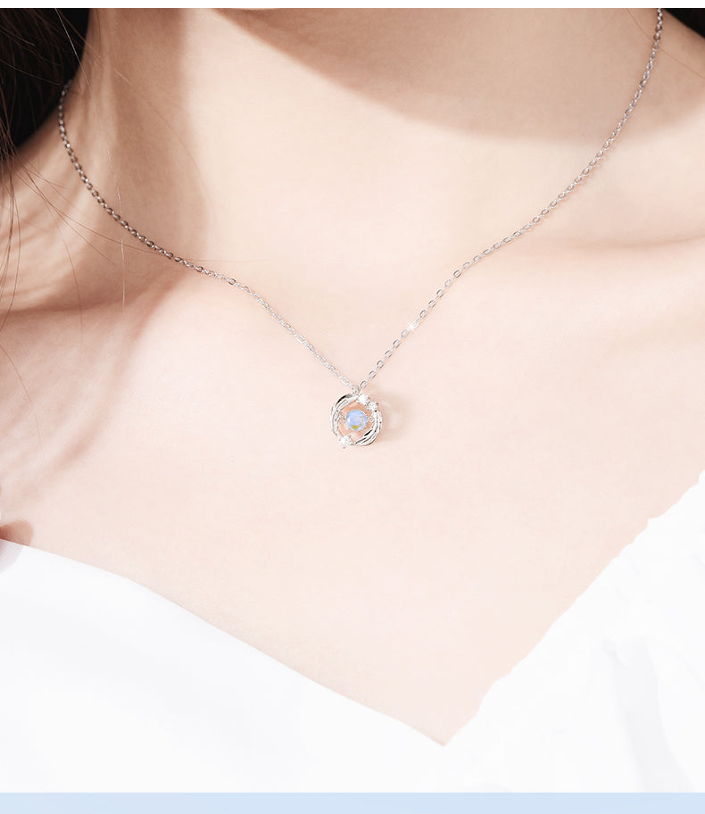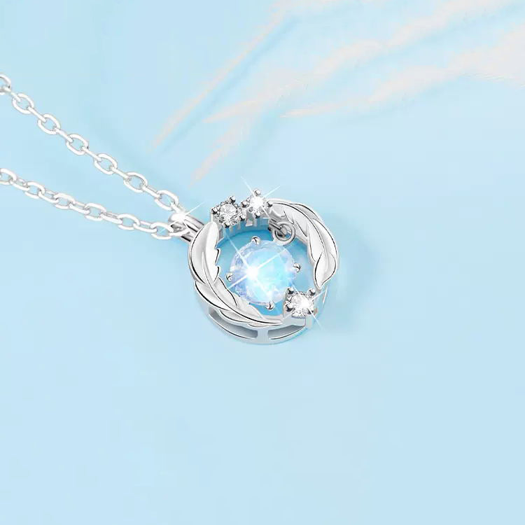 Silver Flash Necklace Feather Beating Heart Moonstone Necklace