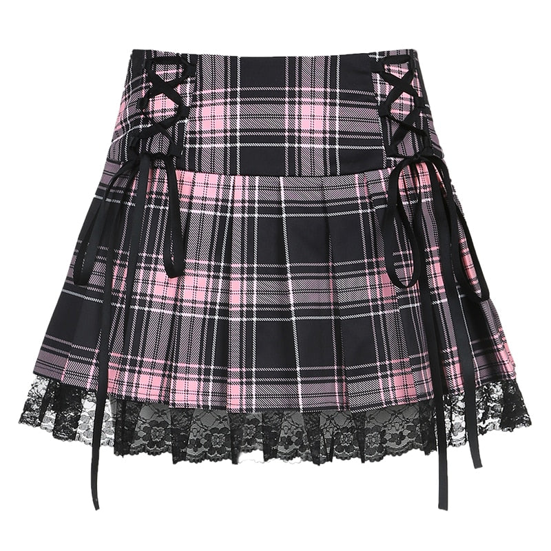 Skirts Pleated Skirt Lace Up Sexy Mini Punk Skirt Gothic Black Skirt Jupe Femme