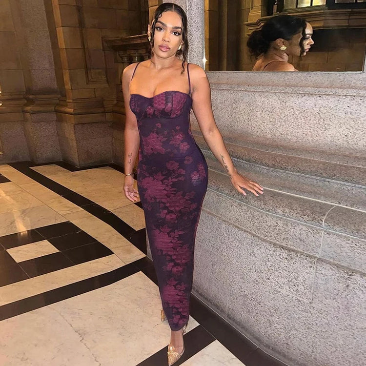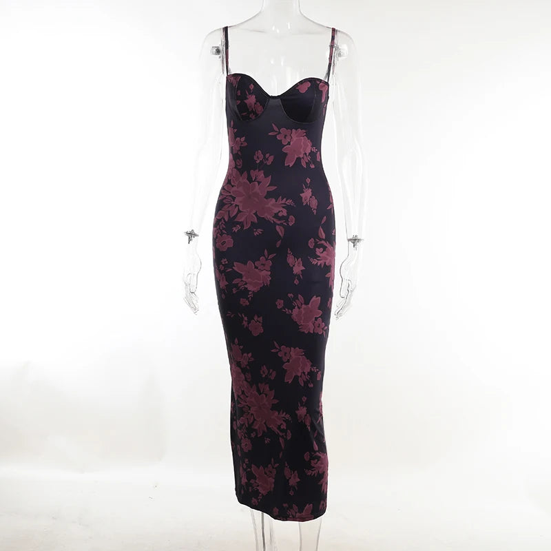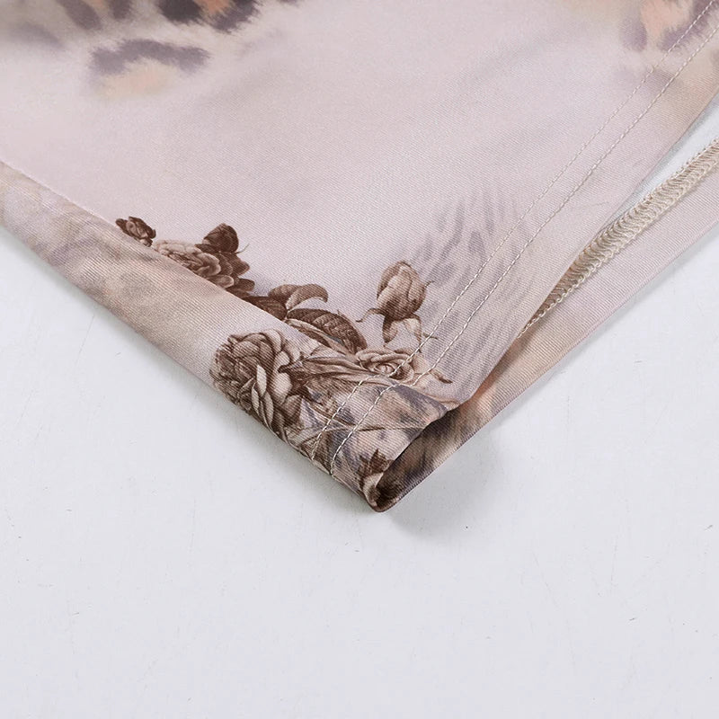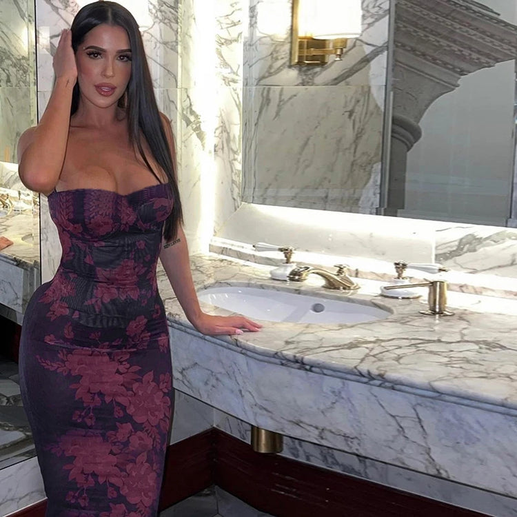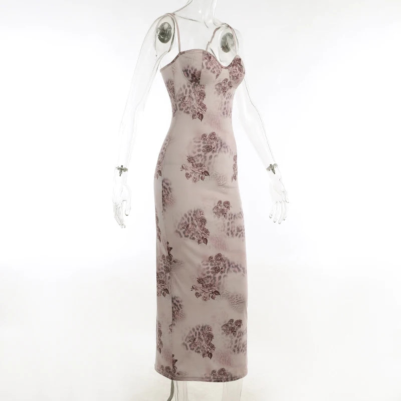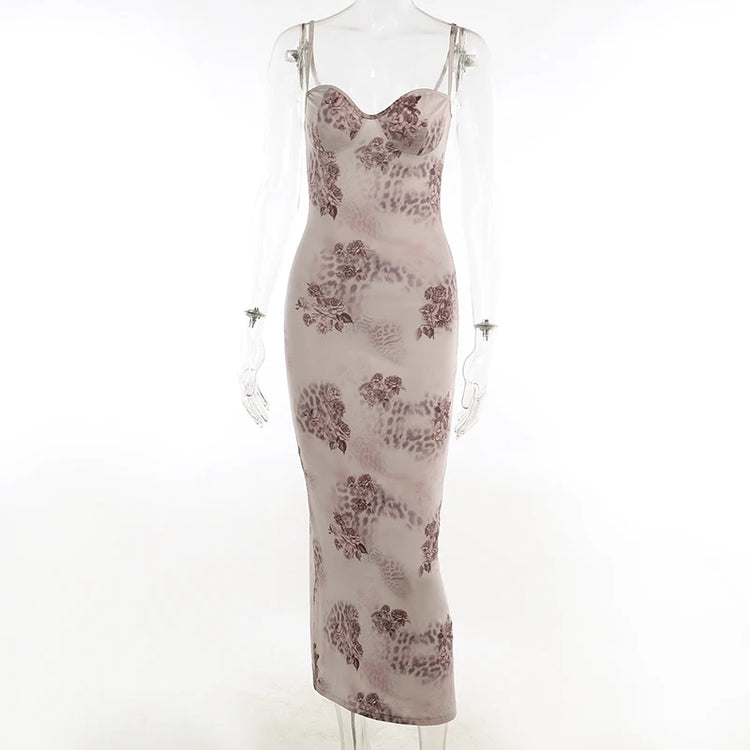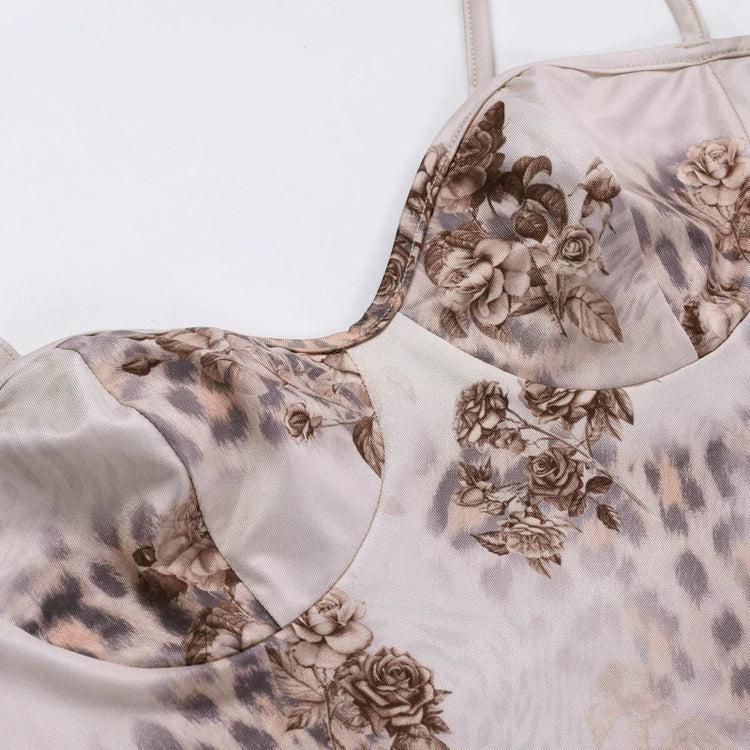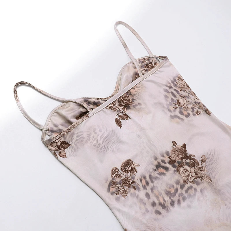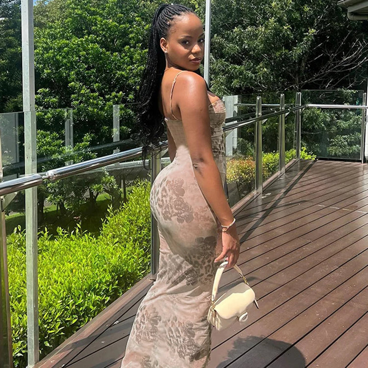 Sleeveless V-neck Backless Bodvcon Printed Spaghetti Strap Dress