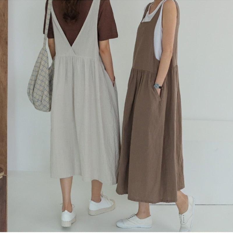 Spring and Summer Sleeveless Robe Dress Ladies Dress Plus Size XL- 5XL Cotton Linen Wome