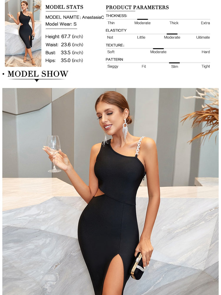 Summer Hollow Out Bandage Dress For Women Sexy Sleeveless Diamonds Evening