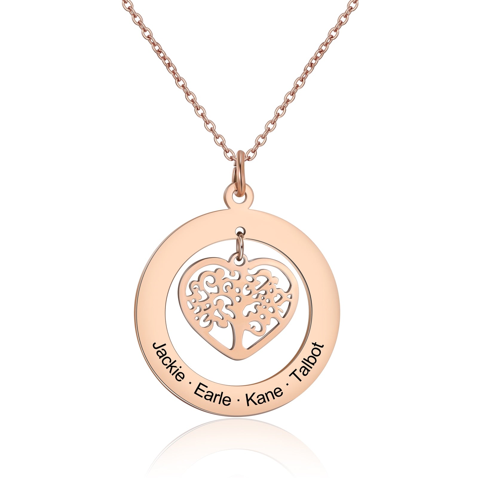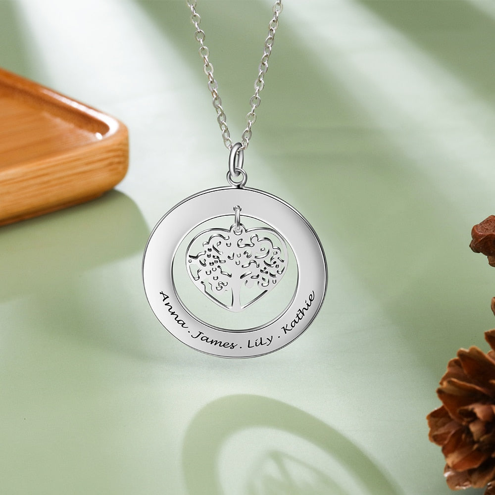 Tree of Life Engrave Name Necklace Silver Color Round Customized Pendants