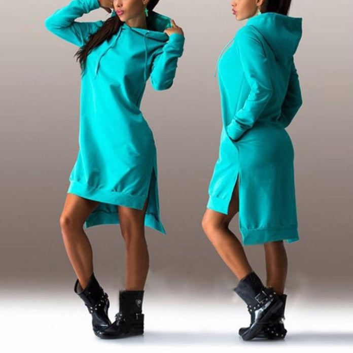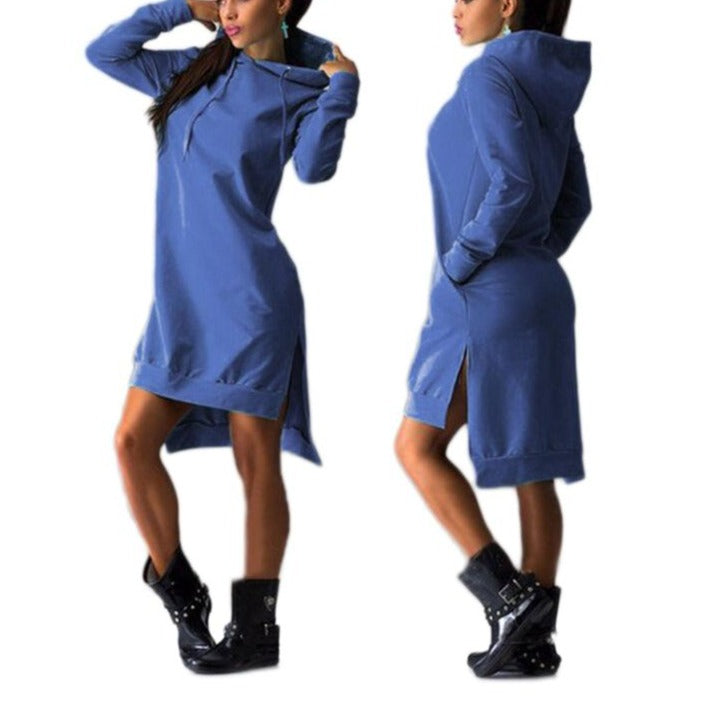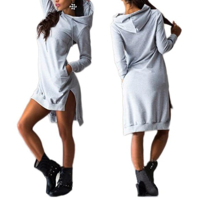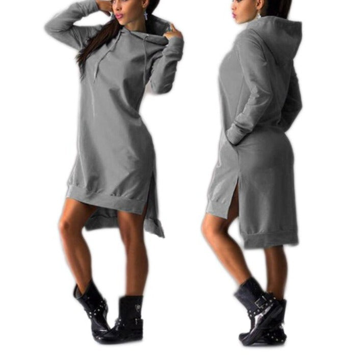Woman Sweatshirt Dress Hoodies Autumn Sports Casual Long Sleeve Split Sweatshirt Hooded Dress